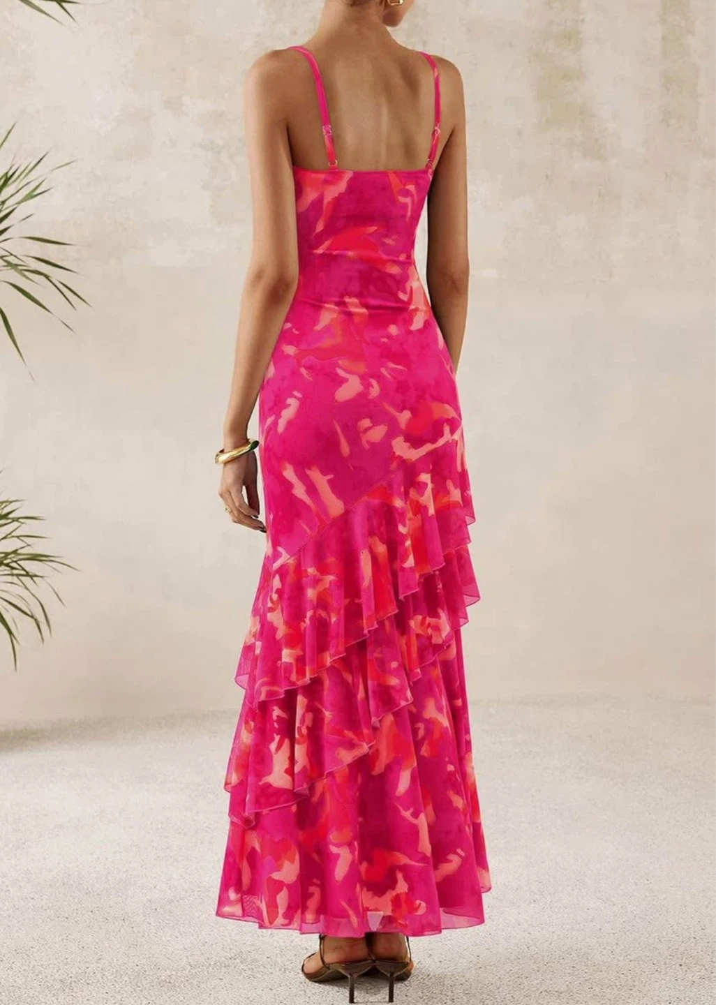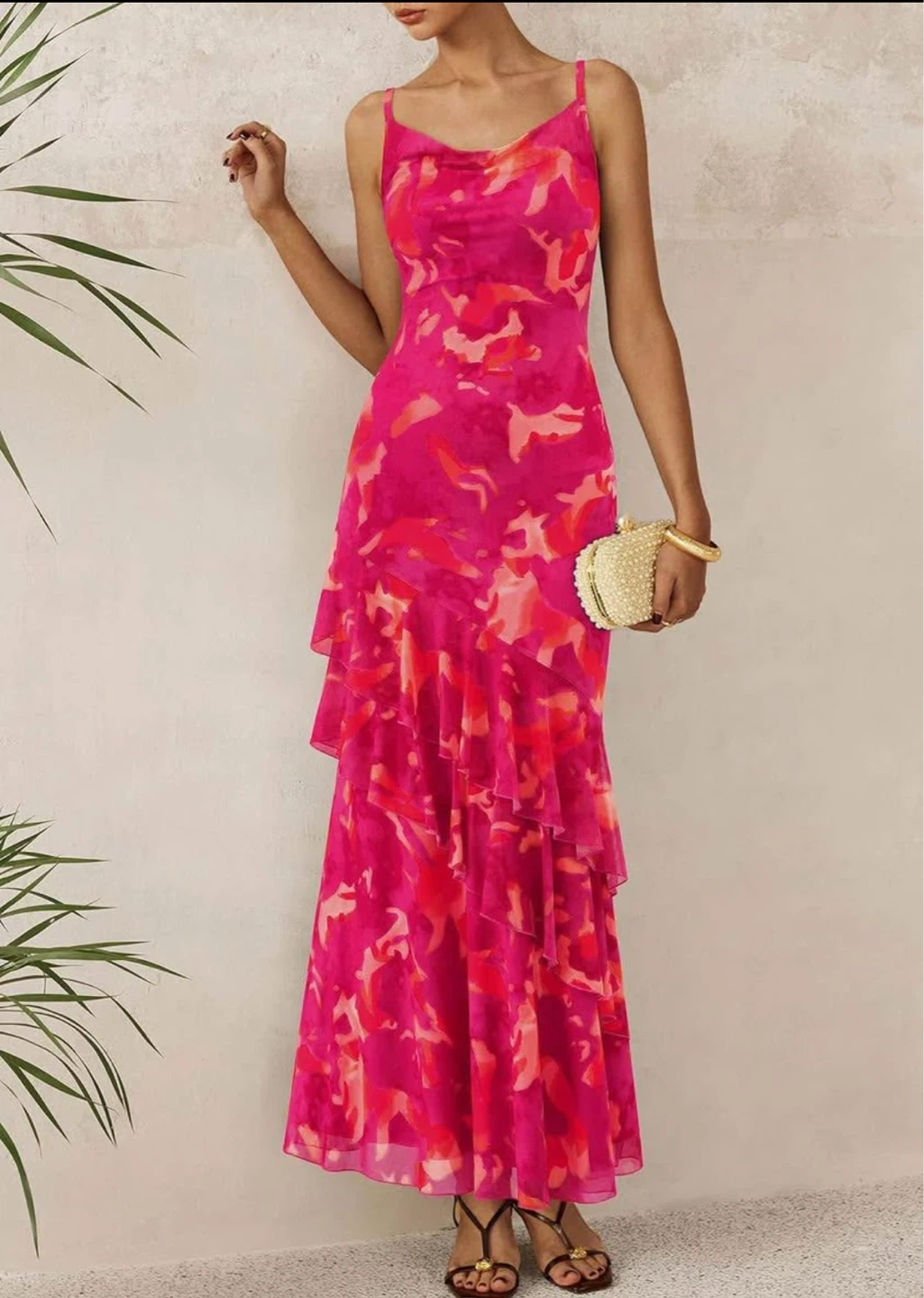 Brand New PRETTYGARDEN Tiered Floral Beach Sundress with Spaghetti Strap long dress, Can be used by a Wedding Guest Size - XL and S Color- pink No delivery.