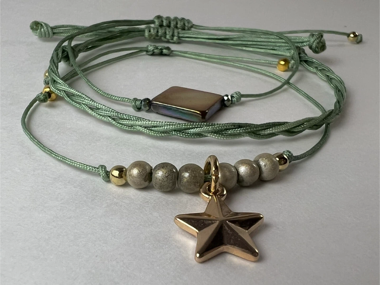 Selling a set of handmade bracelets! They're a light green colour and feature unique charms and beadwork. Light, classy and perfect for adding a little something to your outfit! One bracelet is $5 Set of three is $10 Check my other listings Buy more to get discounts ๐