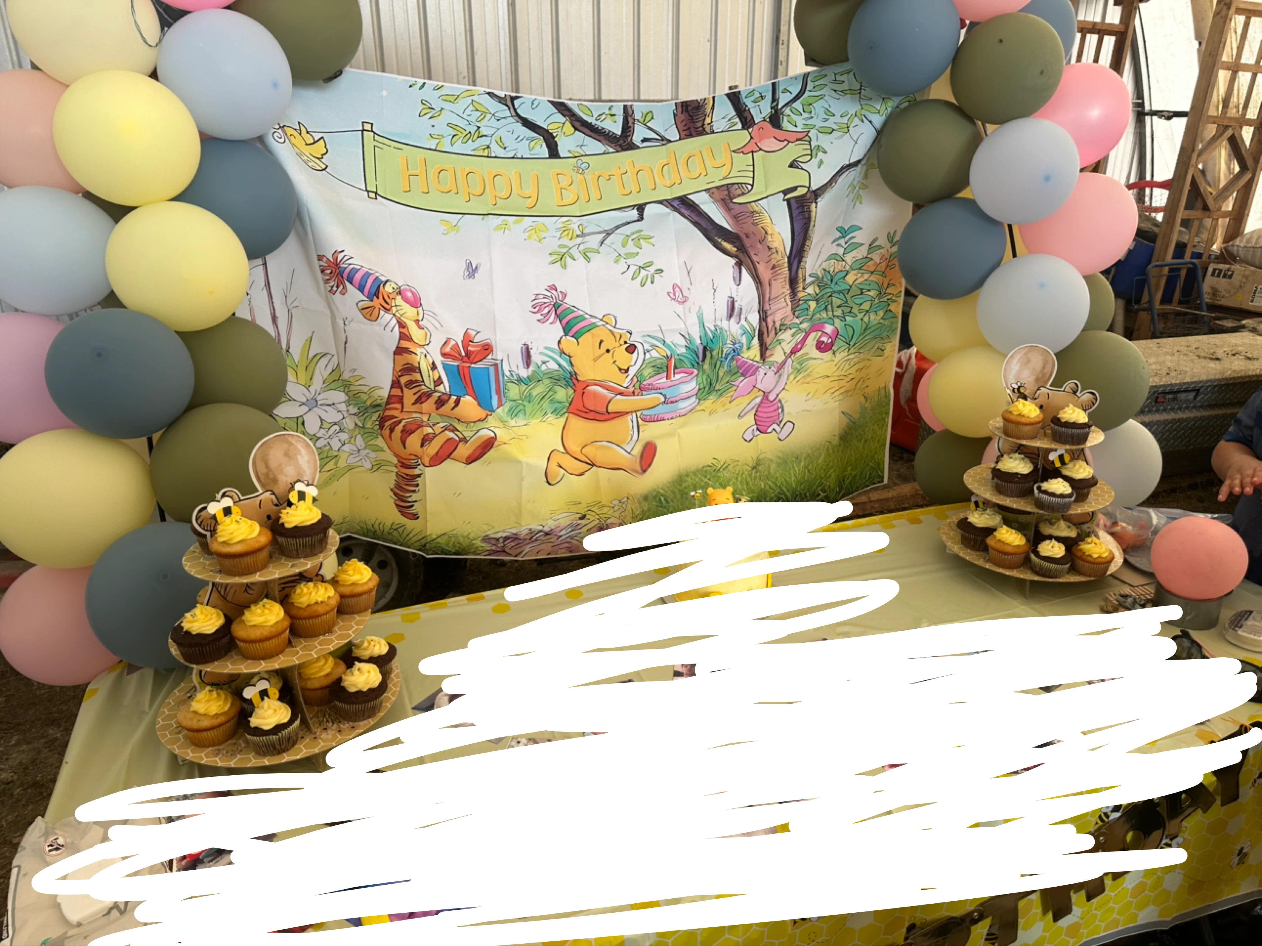 Cupcake stands x2 Happy Birthday banner Everything Winnie the Pooh