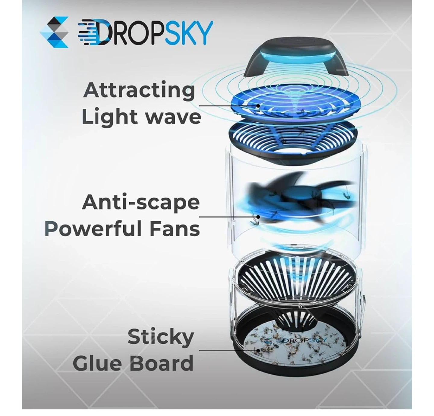 I'm selling a brand new Dropsky Fly Trap still in its original box! It's a 2.5W electric fly trap that uses a long-range sticky glue board and a luring UV light to attract and trap flies. It also features anti-escape powerful fans. Comes with 1 device and 2 refills!