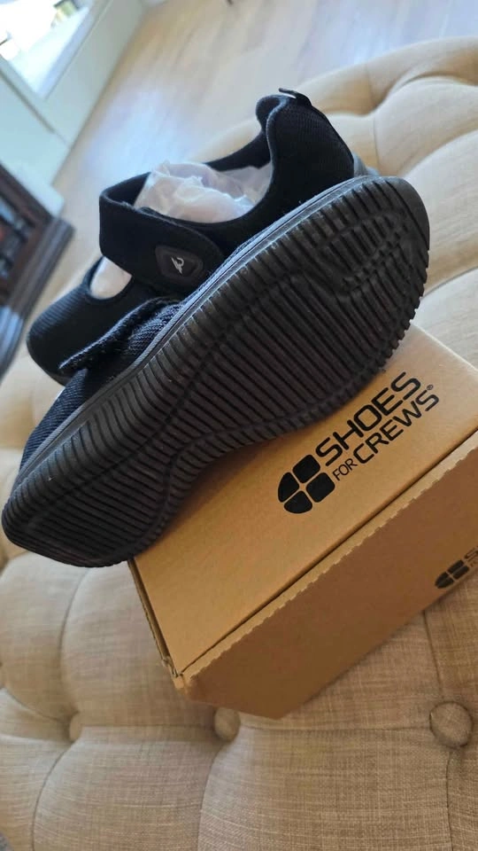 Used once, not my size Fits 7 or 7.5 Adjustable strap Lightweight and flexible outsole Very comfortable Black PU New Westminster - Victoria Hill Cash only Yes, it's available