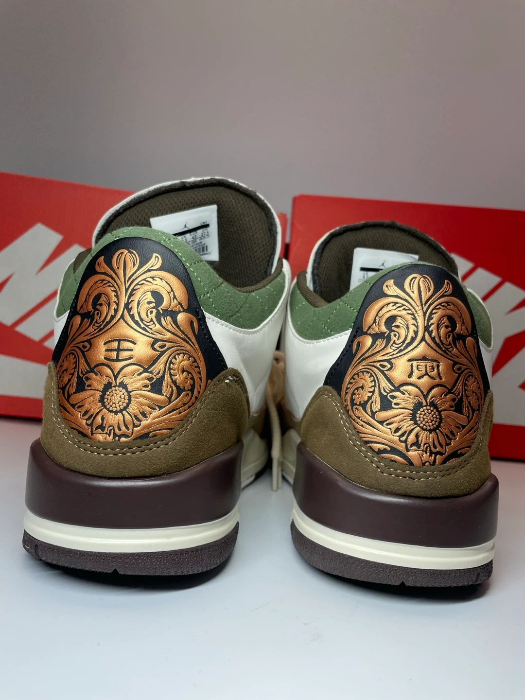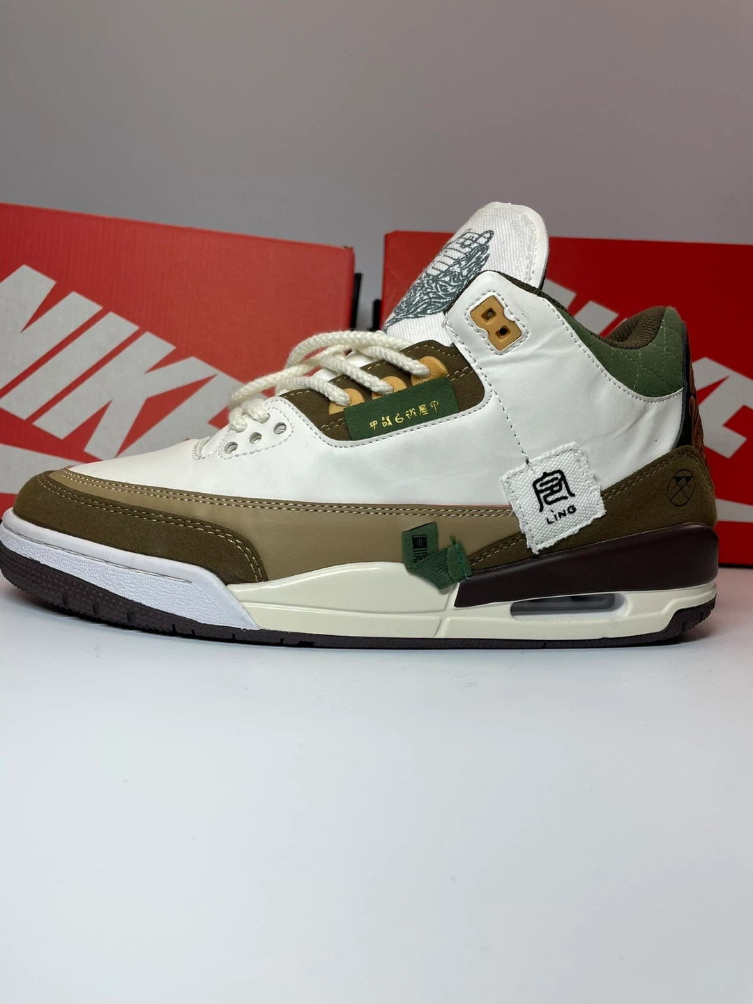 Selling a pair of Nike Air Jordan 3 Retro SP LING sneakers. These are in great condition and come with the original box. The shoes feature a unique design with intricate details and a mix of colors. Perfect for sneaker enthusiasts!