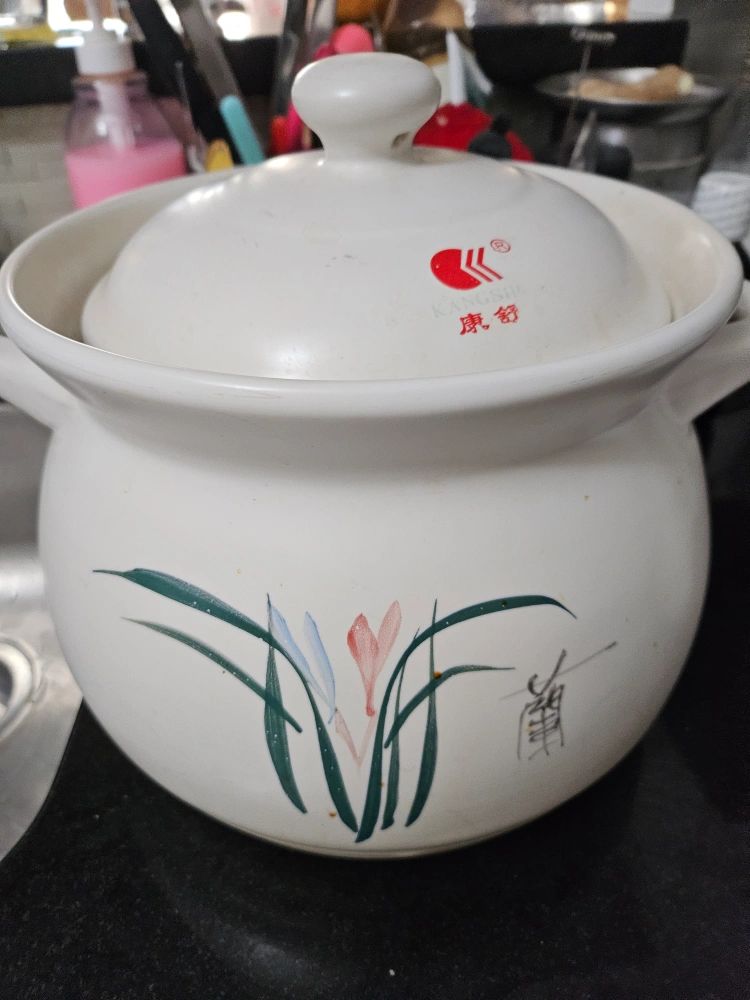 Selling a Kangshifu casserole pot. It's white with a floral design. Perfect for making soups and stews!
