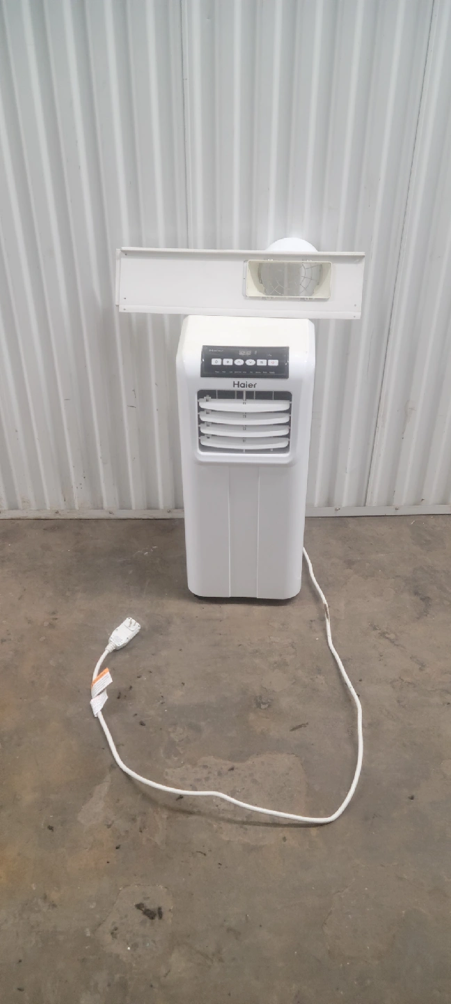 Selling a Haier portable air conditioner. It's in good working condition and ready to keep you cool! It comes with the exhaust hose and window kit for easy setup