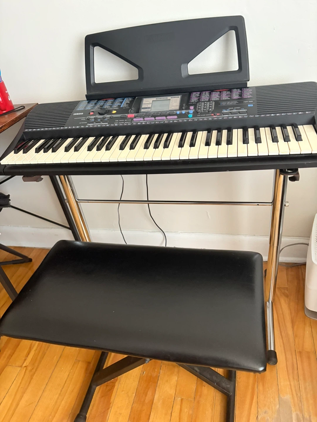 Selling a Yamaha PSR-290 keyboard! It comes with a stand and a bench, so you'll have everything you need to start playing. Great for beginners or anyone looking for a portable keyboard to practice on. Feel free to reach out if you have any questions!