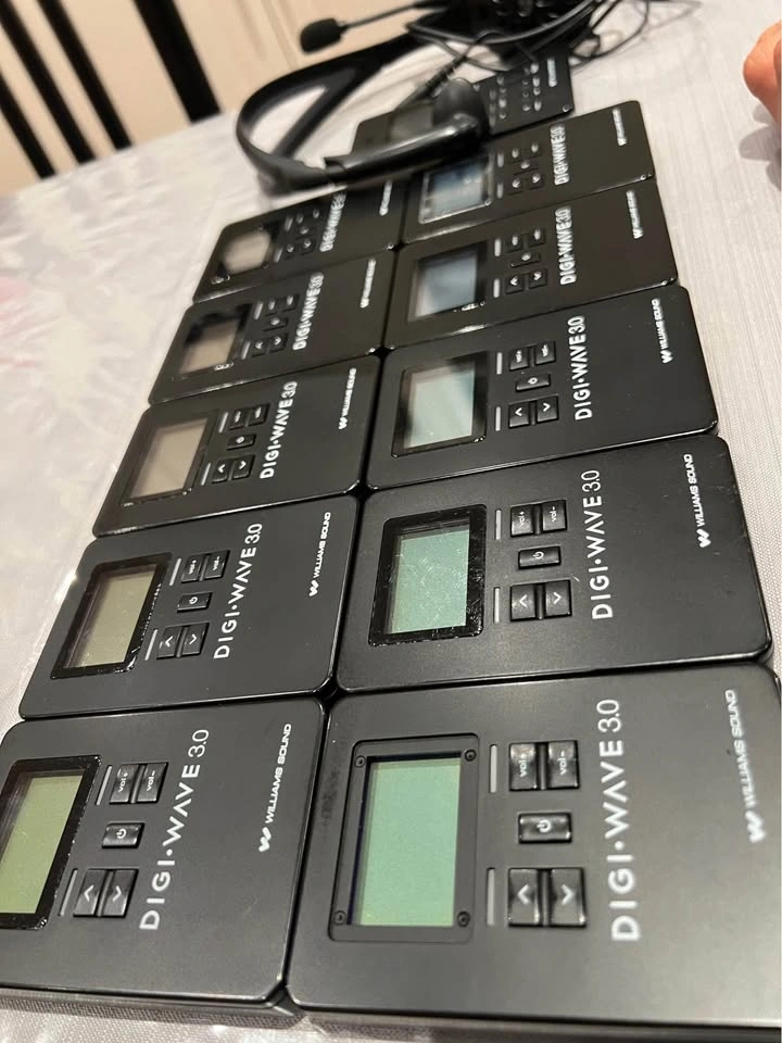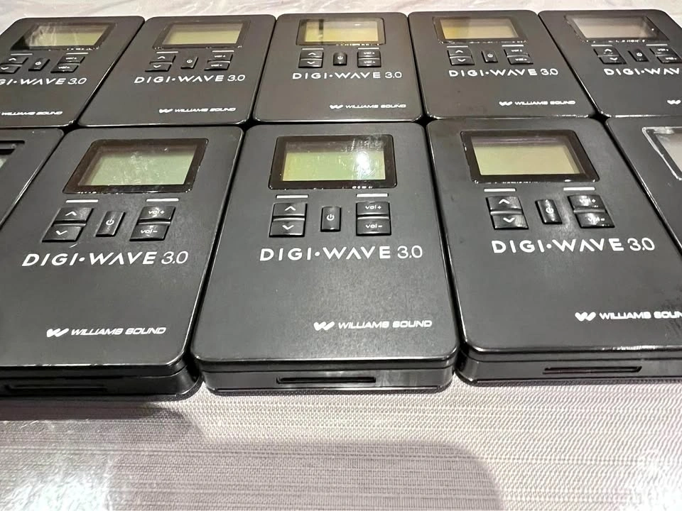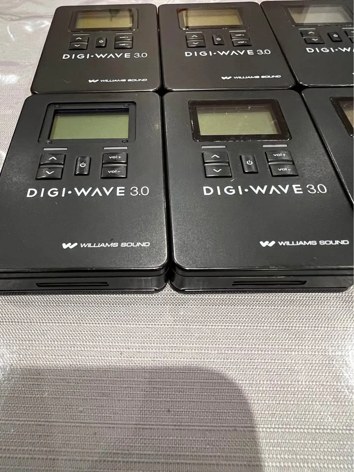 1 tranceiver DLT300 10 receivers DLR360 The Williams Sound Digi-Wave 3.0 DLR 360 is a digital receiver designed for listen-only applications within a Williams Sound Digi-Wave 300 Series system. It operates on the 2.4 GHz band, features a large LCD screen, and can be used with earphones, headphones, or a neckloop via its 3.5 mm headphone jack. The receiver is lightweight, rechargeable (with a separate accessory), uses two AAA batteries, and has a range of up to 300 feet indoors.