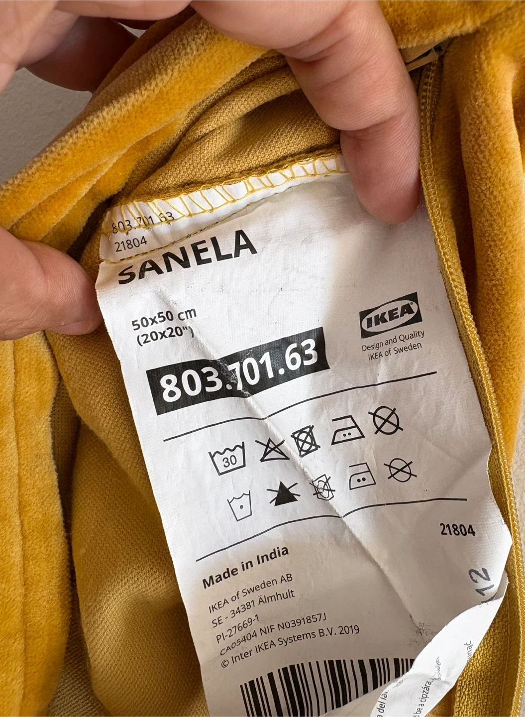 Selling a gently used IKEA Sanela cushion cover in a lovely golden yellow colour! It's made of soft velvet and is 50x50 cm (20x20 inches) in size. Adds a nice pop of colour to any room Need some ironing Price is firm Cash only Pick up only