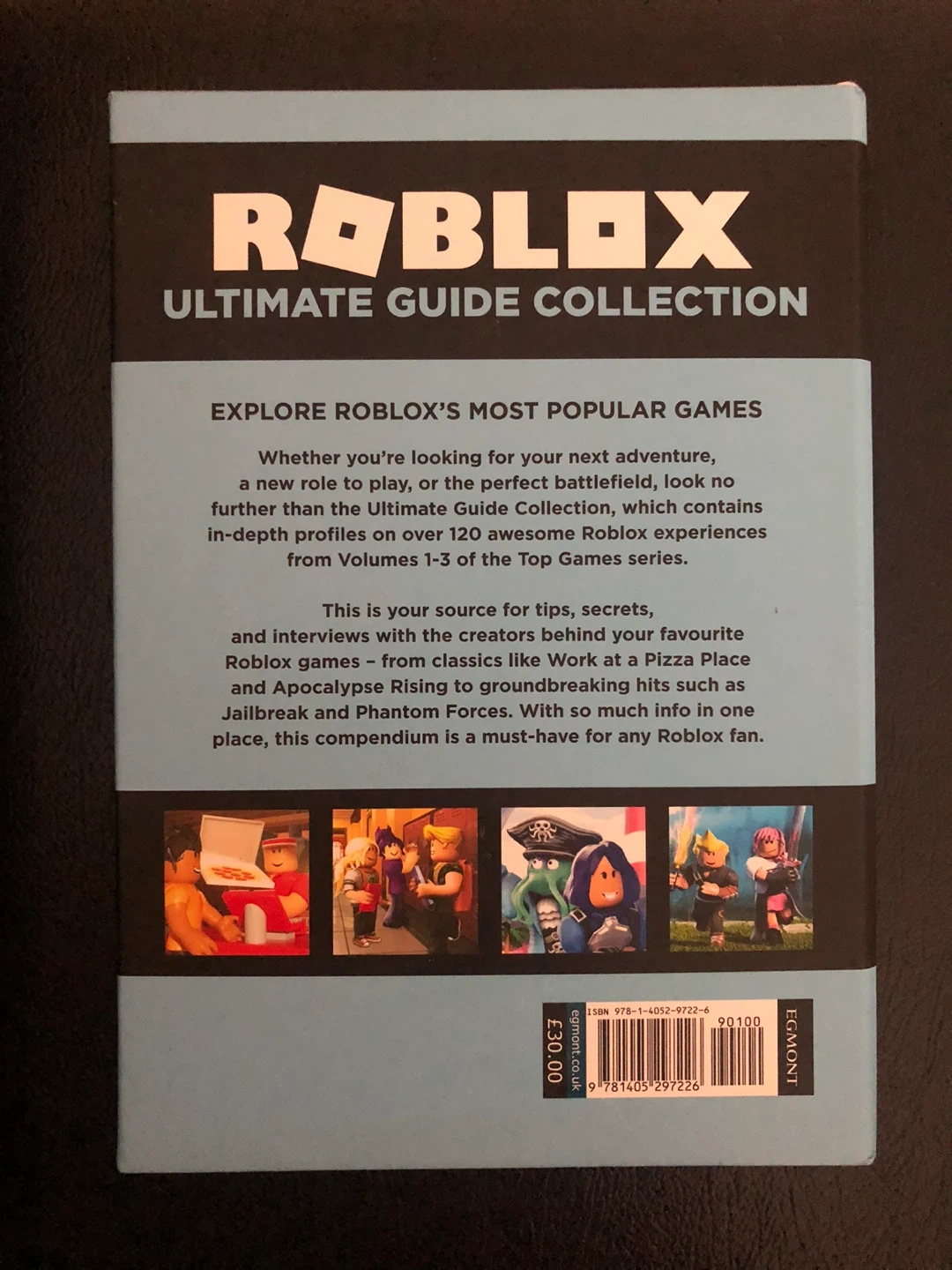 Selling a Roblox Ultimate Guide Collection, which includes three books: Top Adventure Games, Top Role-Playing Games, and Top Battle Games. These books are a guide to over 40 awesome Roblox games. This collection is a must-have for any Roblox fan