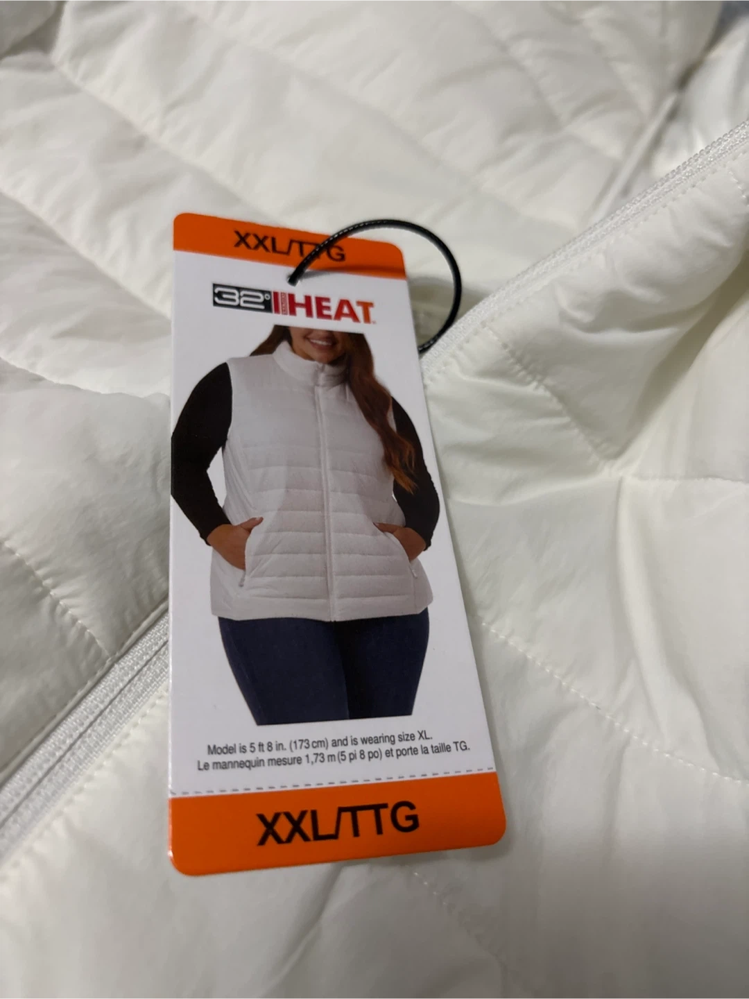 Selling a brand new 32 Degrees Heat vest in white, size XXL. It's lightweight and perfect for layering! The material is soft and comfortable. It's a great addition to any wardrobe for extra warmth without the bulk