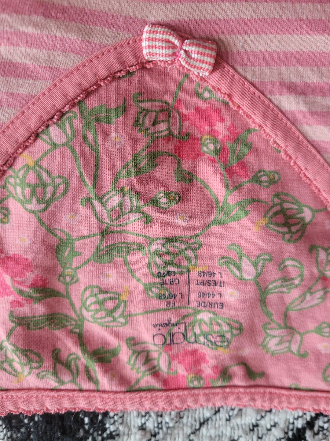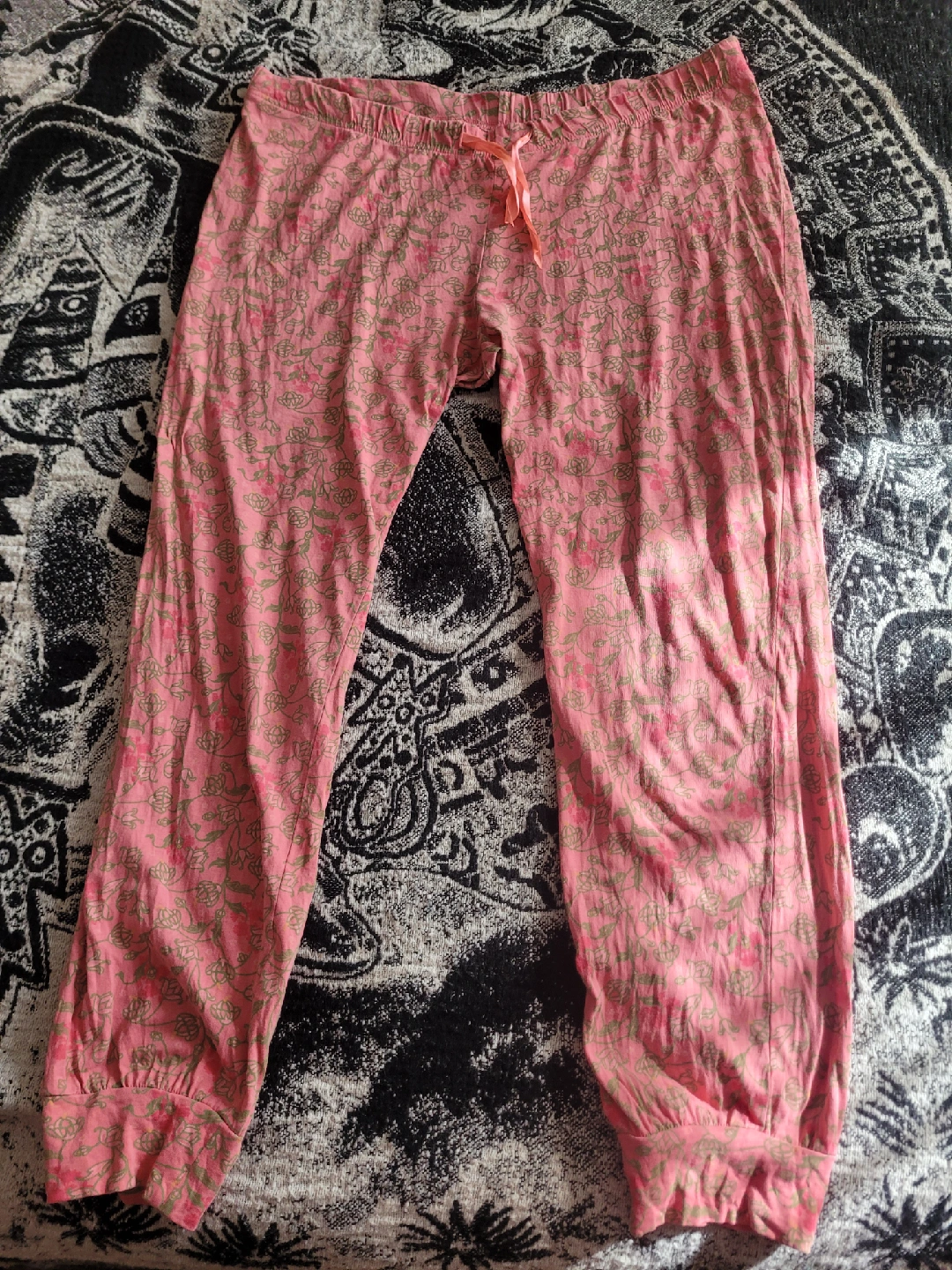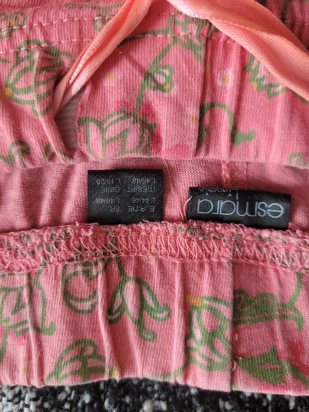 Cute and comfy Esmera pajama set! This set includes a short-sleeved top and matching pants, both in a lovely pink floral pattern. The size is L 46/48. Perfect for cozy nights in!