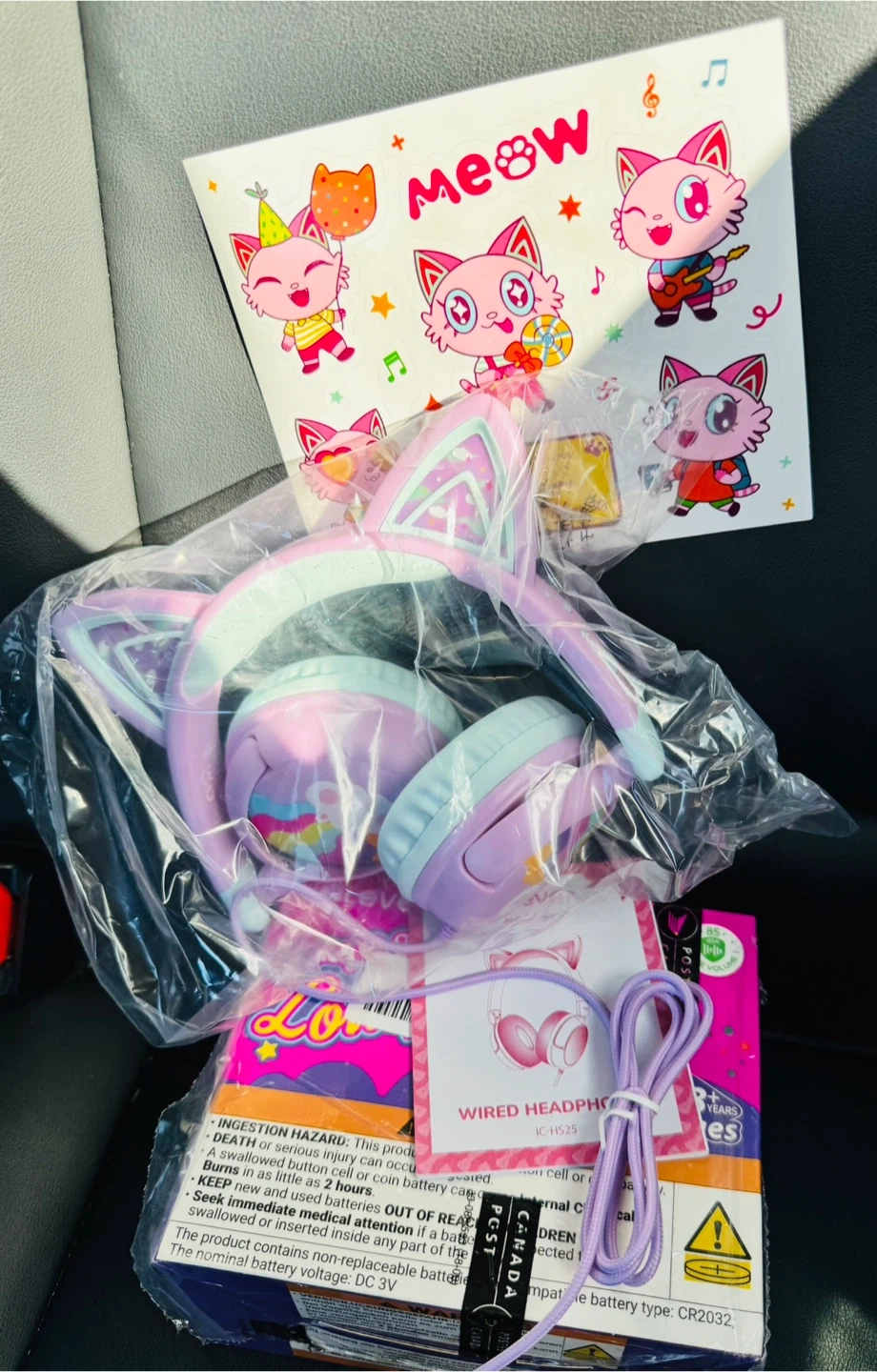 Brand new Selling a brand new pair of iClever Meow cat ear headphones! They're still in the original packaging and ready for a new home. Perfect for kids aged 3+ years. Comes with wired headphone IC-HS25.