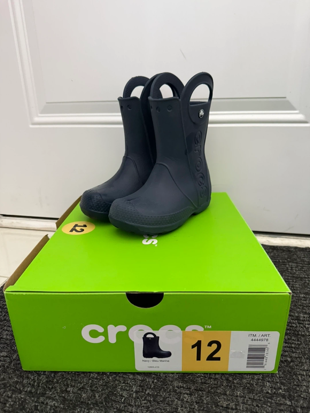 Barely used, crocs handle it rain boots in navy size 12C. Priority to quickest pick up in Innisfil (Belleaire shores subdivision), TIA