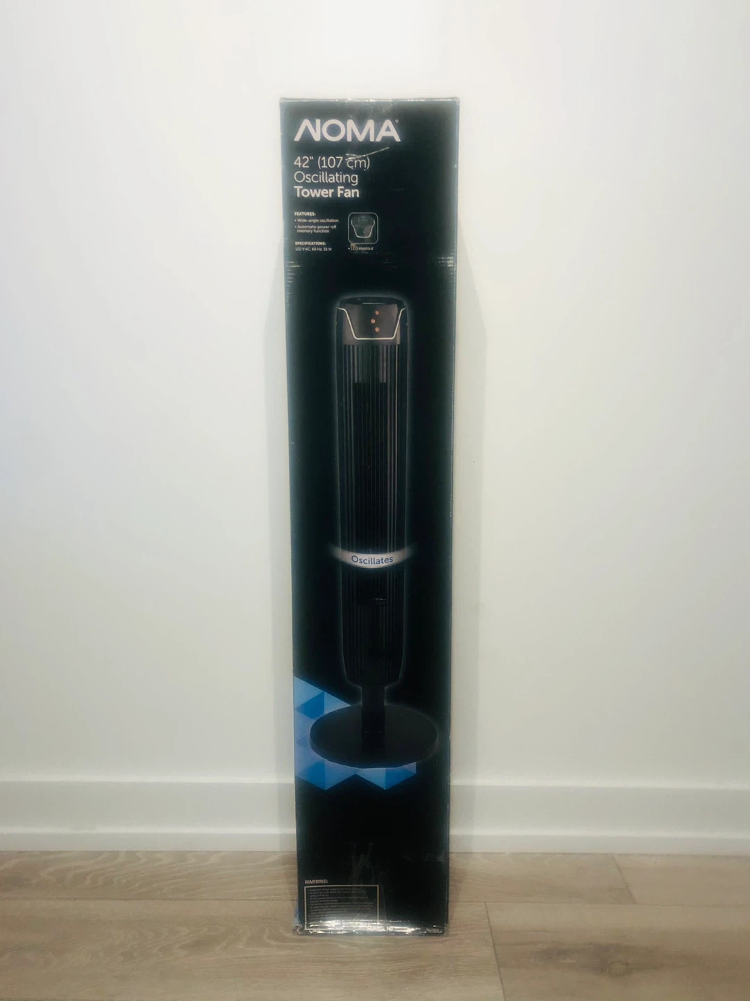 Selling a Noma 42" (107 cm) Oscillating Tower Fan in black. It's in great condition and ready to keep you cool! It oscillates for better air circulation, and the box is included
