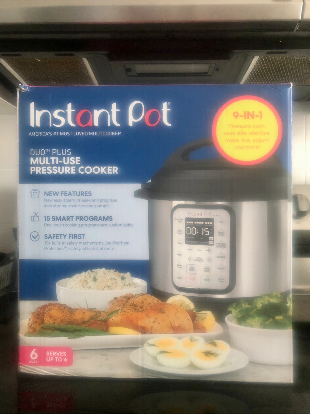 Selling an Instant Pot Duo Plus, a versatile 9-in-1 multi-use pressure cooker! It can pressure cook, sous vide, sterilize, make rice, yogurt, and more. This model has 15 smart programs and several safety features, including overheat protection and a safety lid lock. It's a 6-quart size, perfect for serving up to 6 people