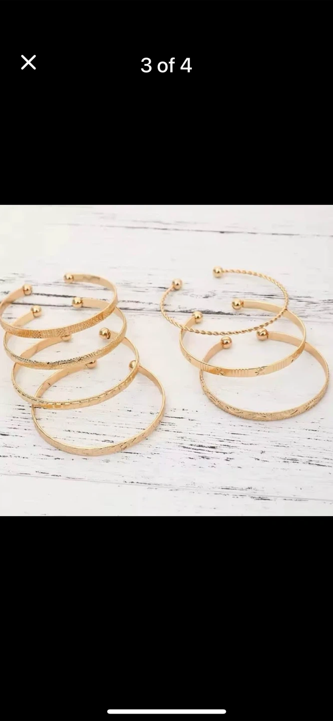 Selling a set of gold bangle bracelets. They're perfect for adding a touch of shine to any outfit. These bracelets are in great condition and ready for a new home