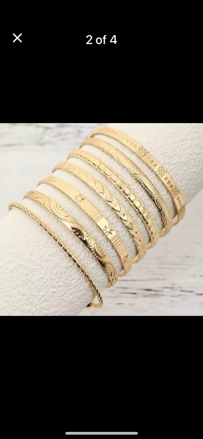 Selling a set of gold bangle bracelets. They're perfect for adding a touch of shine to any outfit. These bracelets are in great condition and ready for a new home