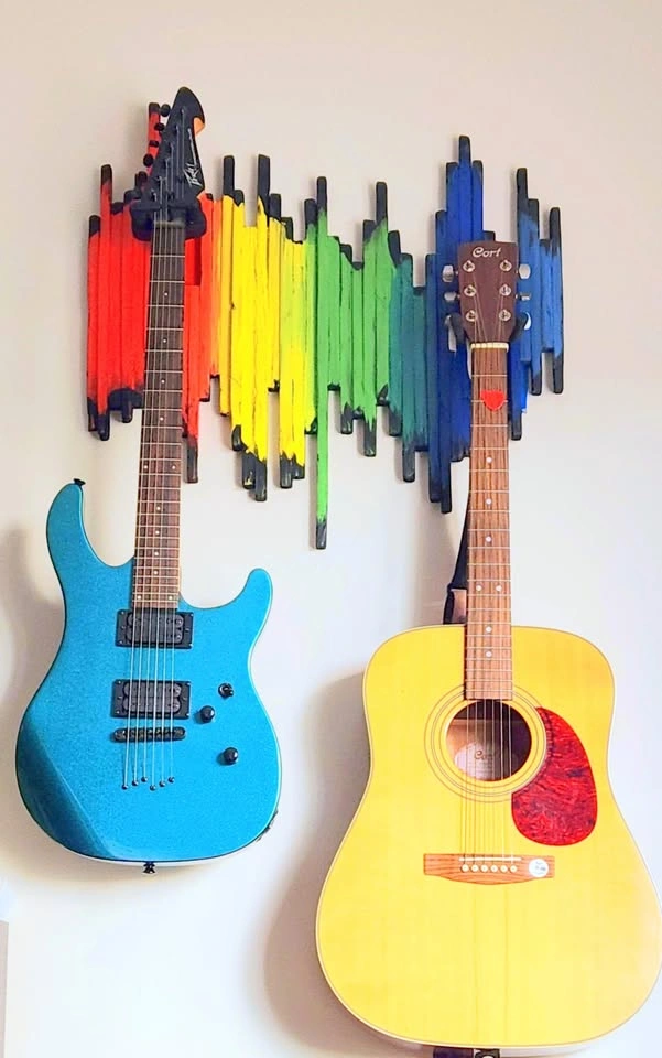These are made from naturally clean strips of wood used locally in the GTA in the Kiln drying process as Lumber separators (not Pressure treated - no chemicals). Each bundle of wood strips takes about 1 hour to dismantle and plane down to revel it's inner beauty, then it is cut down to size. Each strip yields 4-6 pieces of useable wood that I arrange, glue and brad nail them down as with the Rainbow version Some items are stained or left natural, pieces that have 'Character' or markings on them are used on the face to add interest. They look more like fine pieces of furniture with a little rustic feel. Either way they stand out as a standalone piece of Wall Art or a background to hang anything on. Keys, small pictures, Guitars are but a few uses. As before, for heavier items like Guitars consider a larger one (over 16") and drill holes 16" on centre or in the middle (of the smaller units) and screw directly into your wall studs.