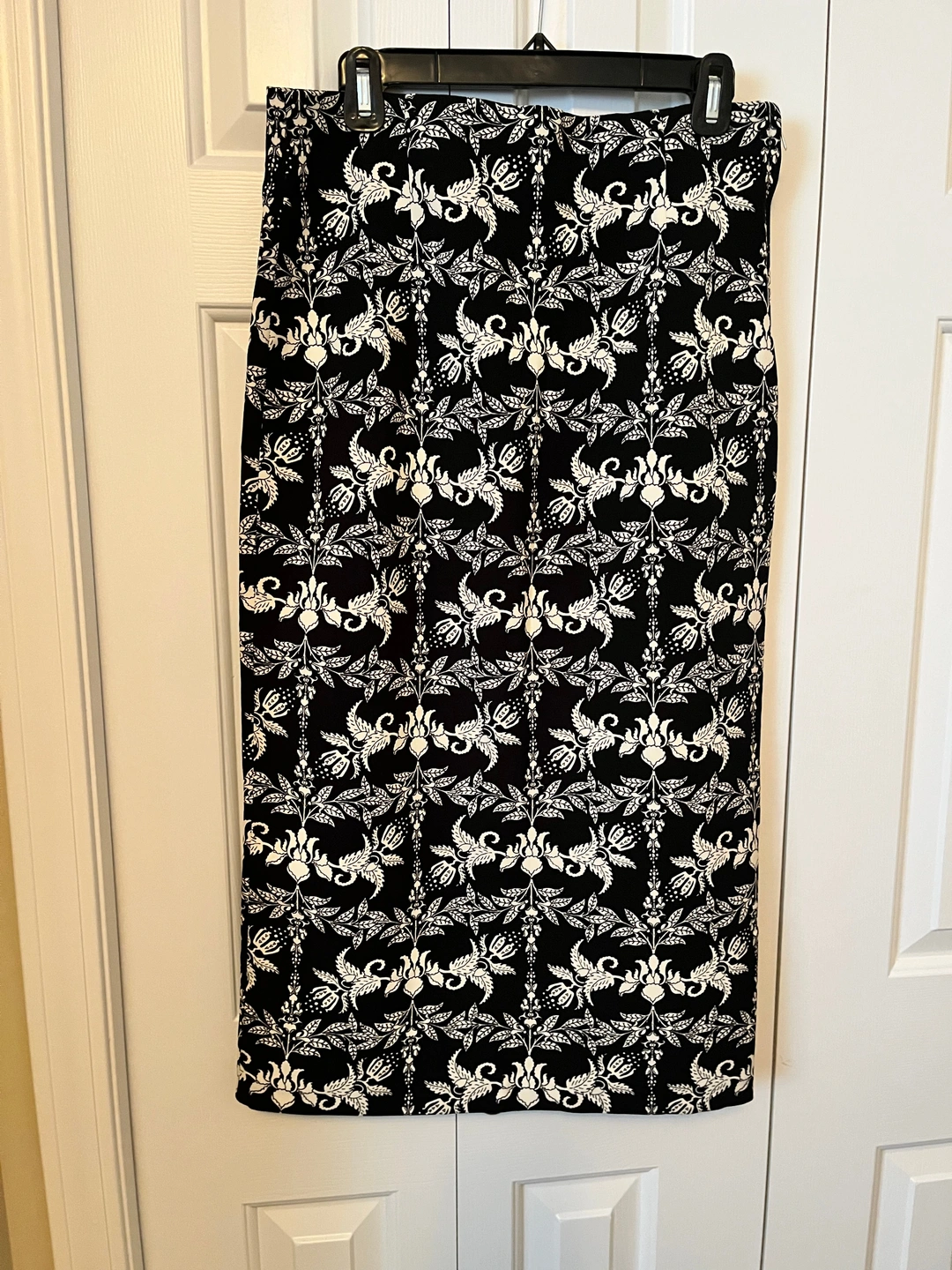 A fun yet elegant midi skirt with a back vent at the hem. My pictures don't do justice to the beautiful pattern. A show stopper for any office gathering. With the right accessories it can easily go from business to cocktail attire.