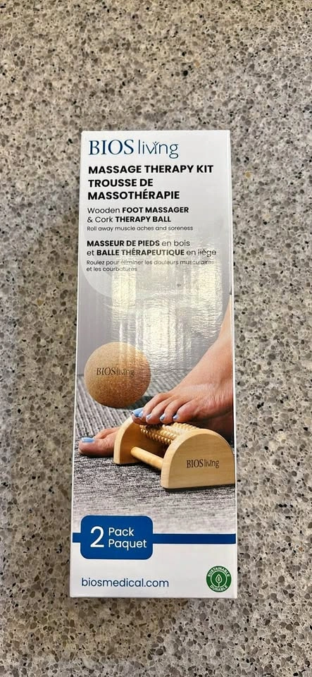 Wooden foot Massager and cork therapy ball. 2 Pack.