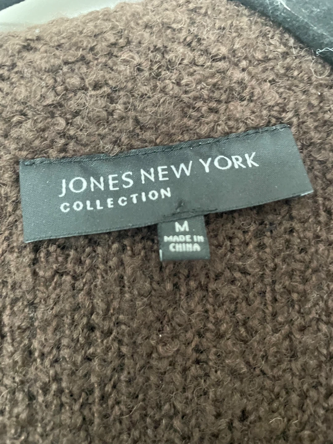 Cozy Jones New York Collection cardigan in a lovely brown colour! It's a size M and made from 50% wool and 50% acrylic, perfect for keeping warm on chilly days. It's in great condition and ready for a new home!