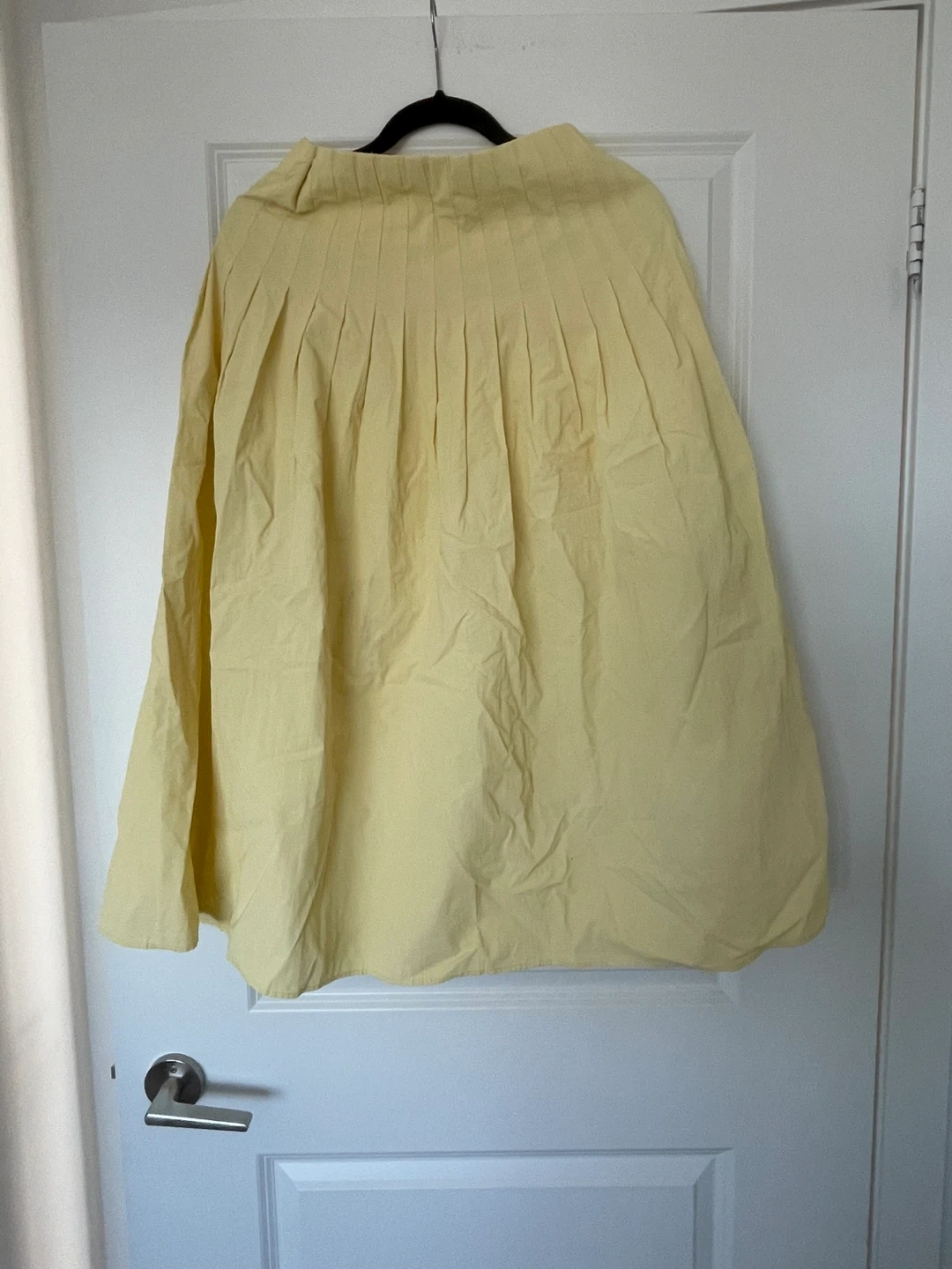 Selling a Zara skirt in a lovely yellow colour! It features a pleated design and is a size L. The material feels nice and light, perfect for spring or summer!