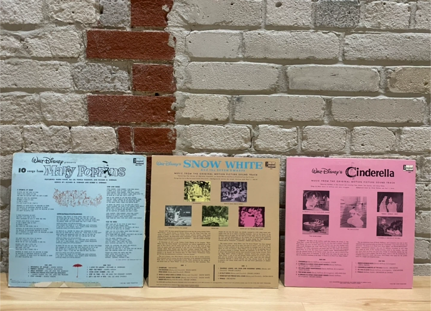 Vintage 1960s/early 70s Walt Disney Soundtracks by Disneyland Mary Poppins Snow White Cinderella Good used condition. Original owners.