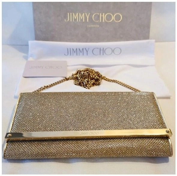 Jimmy Choo Glitter Gold Leather Clutch Bag