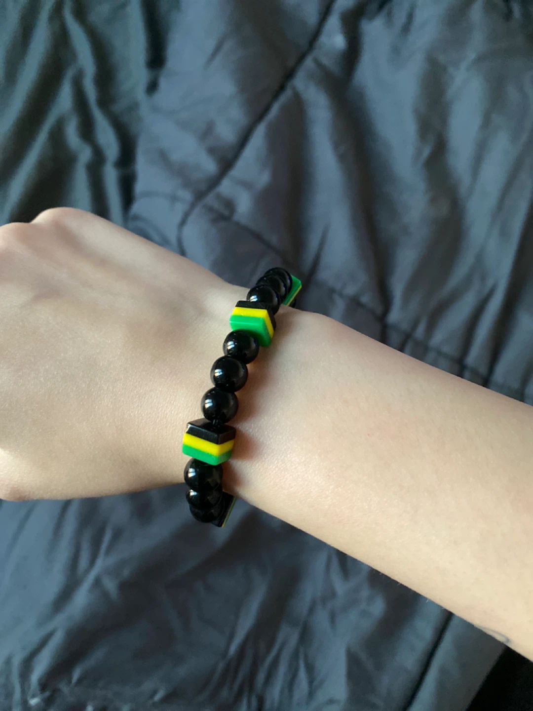 Selling a black beaded bracelet with Jamaican flag colours. It's in great condition and ready for a new home