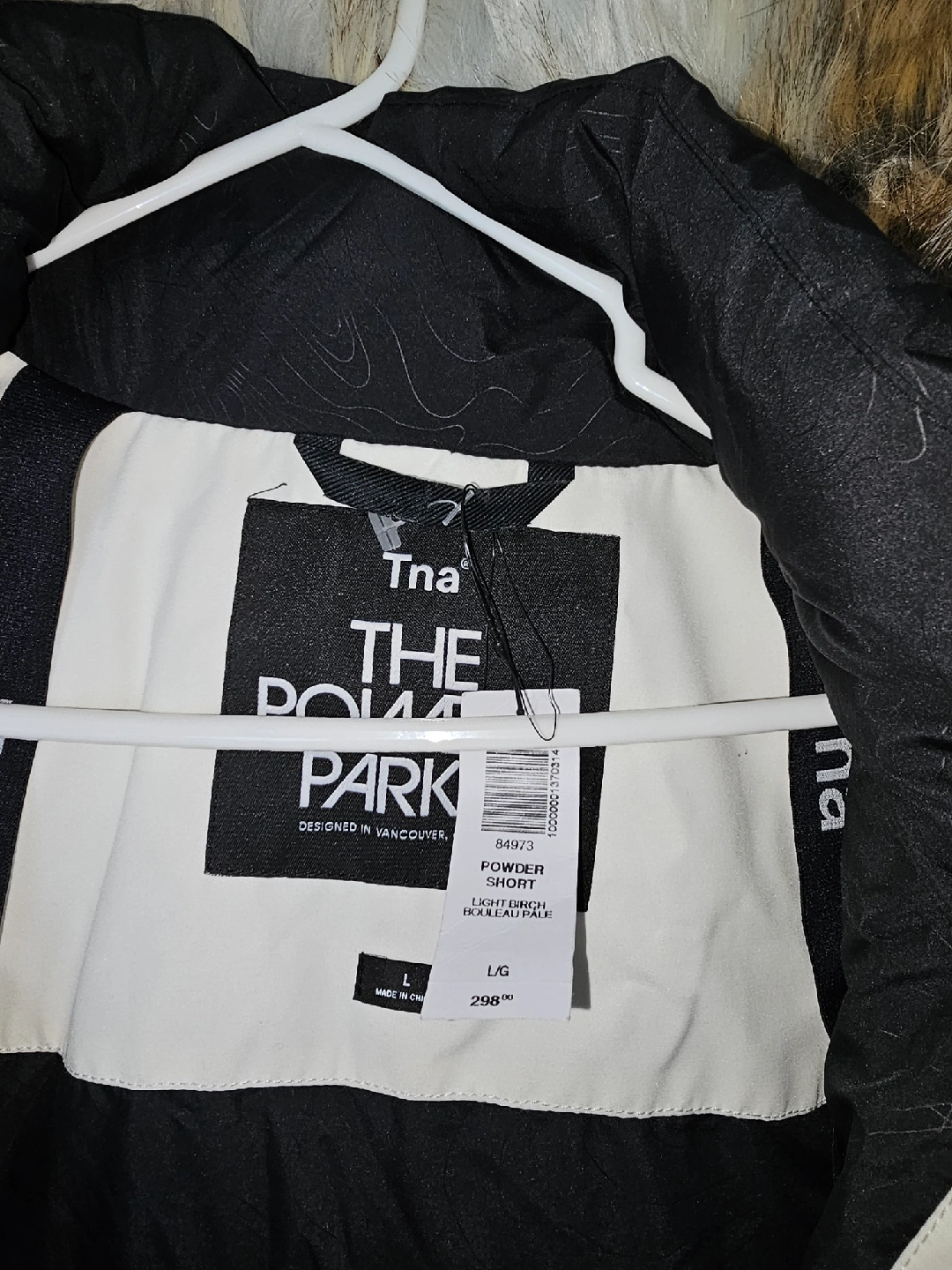 Perfect condition!!!! Brand new never worn: I love it so much that bought it even though it was too big ( I am size M). TNA The Powder Parka Short in size L. The original price was $298, made with Coldstop™ fabric, which is WATERPROOF and WINDPROOF. It is filled with 100% responsibly sourced goose down and features a down-filled Cozy Collar™ and a detachable Real Faux Fur trim on the hood.