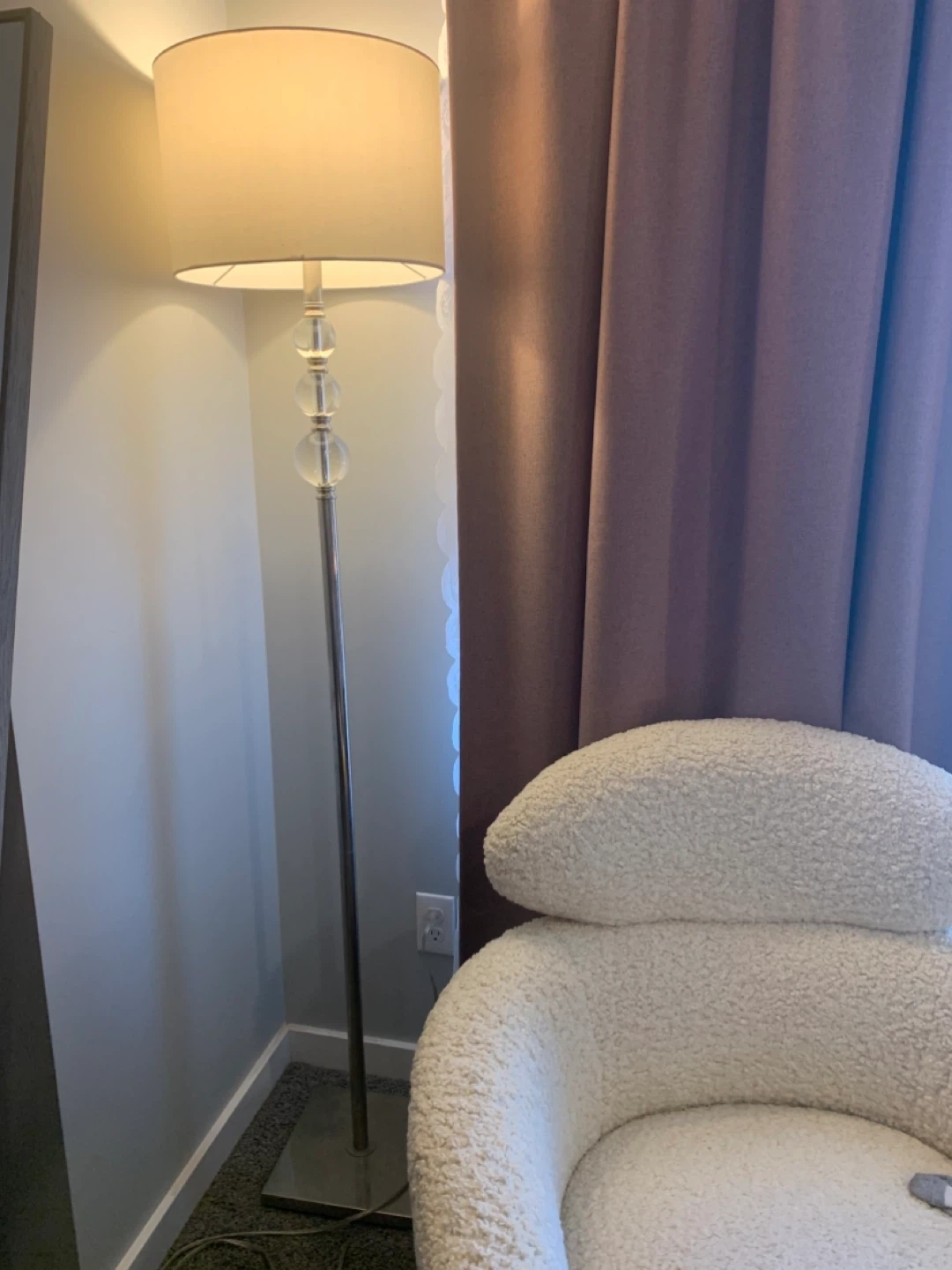 Selling a floor lamp that adds a touch of elegance to any room! It features a sleek design with crystal accents. The lamp is in great condition and provides a warm, ambient light. Perfect for living rooms, bedrooms, or reading nooks