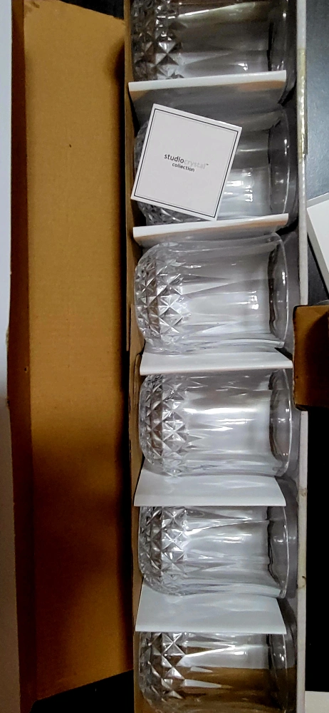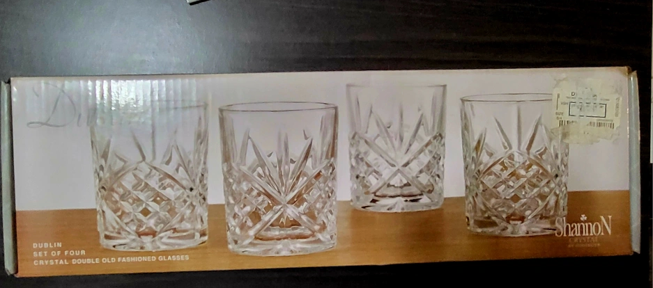 This 4 piece crystal glass set was unused nice small but heavy glasses.
