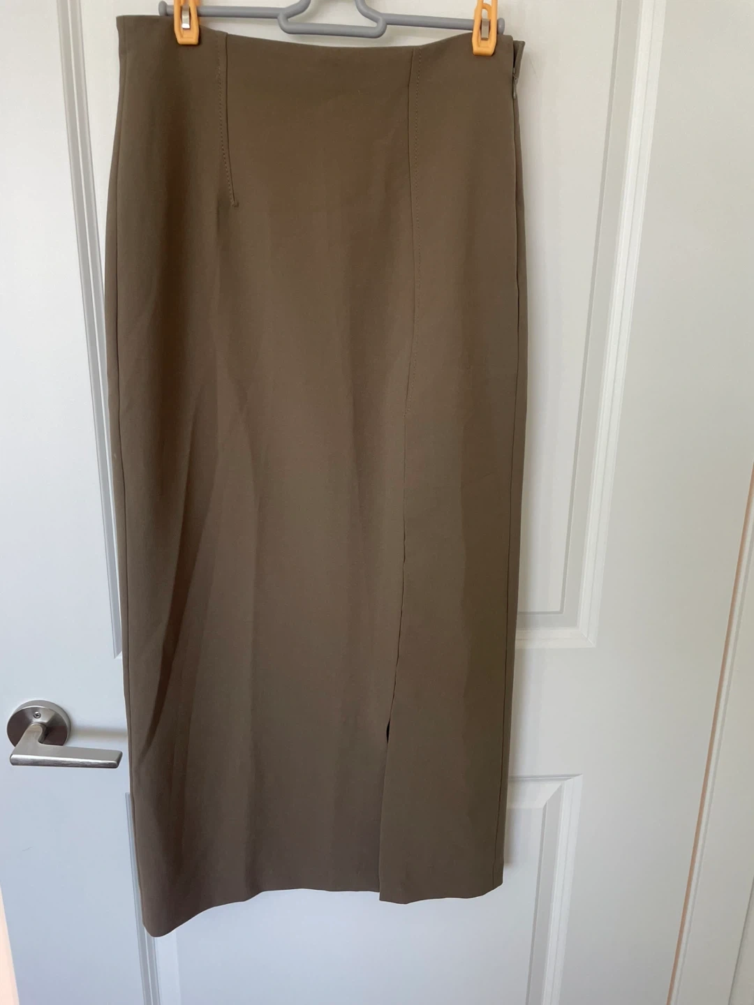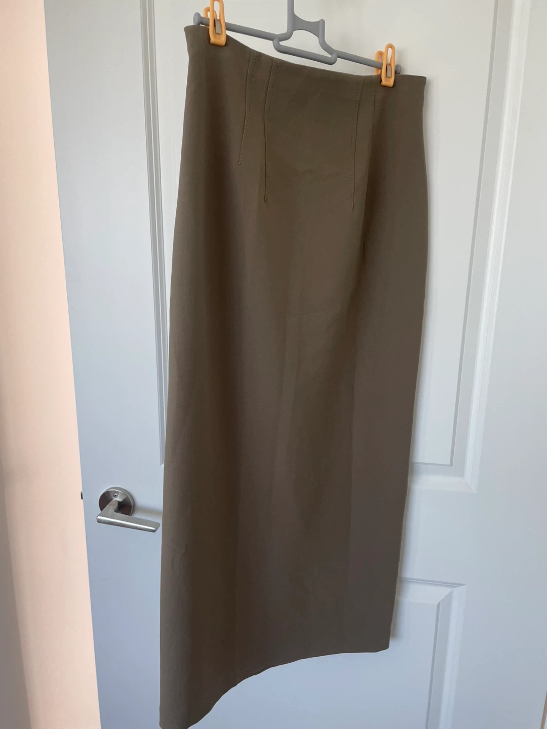 Selling a Zara skirt in olive green. It's a size M and was made in Morocco. Great for any occasion!