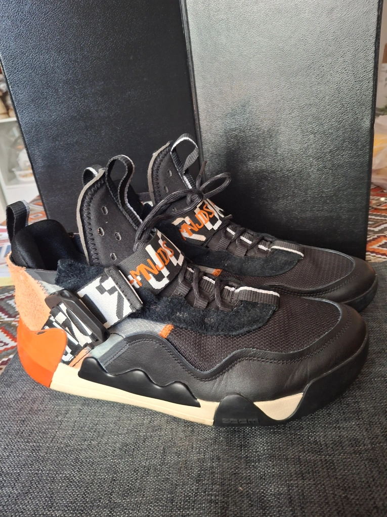Selling a pair of Jordan Zoom Separate basketball shoes. They feature a black, orange, size 9