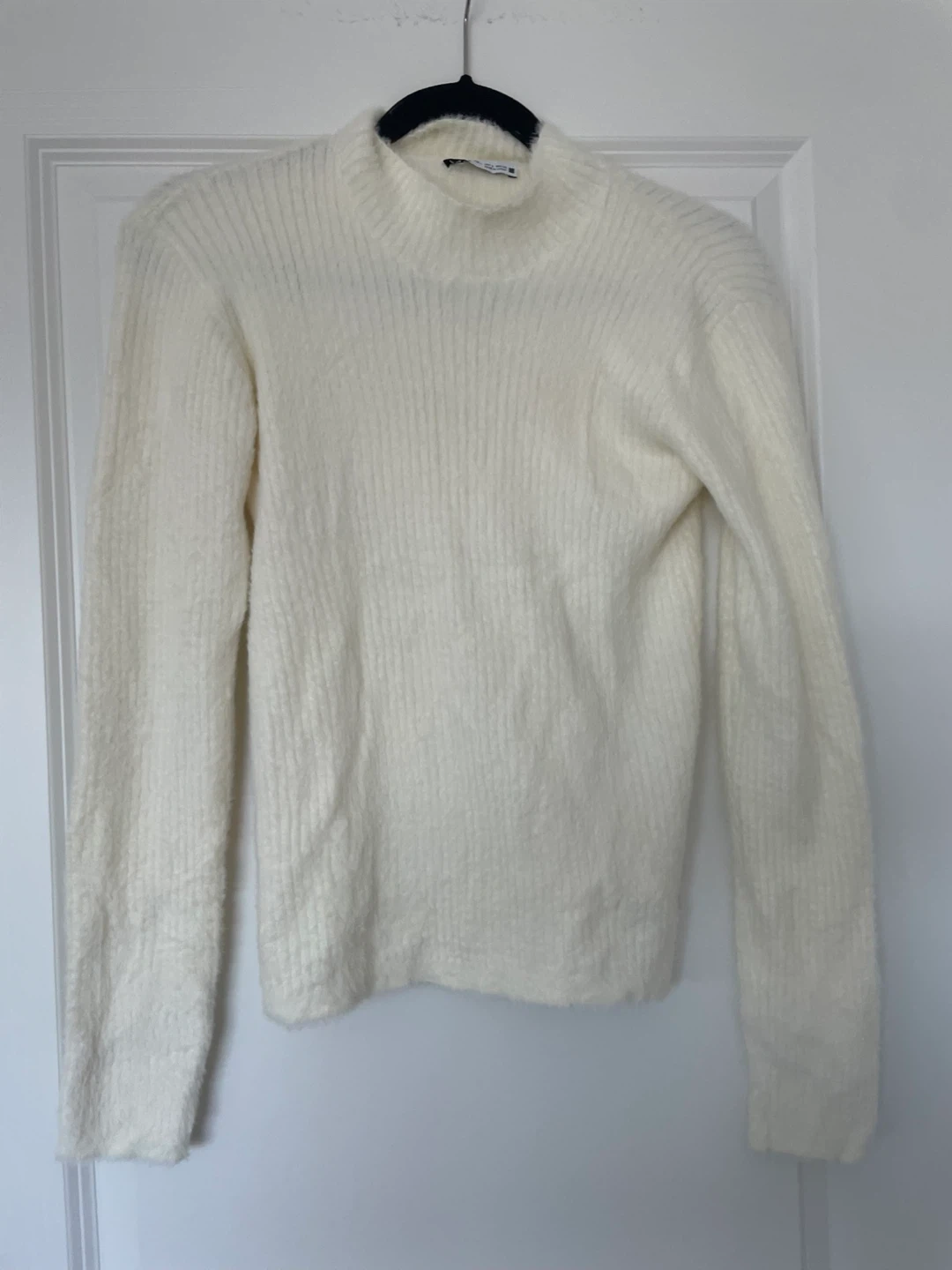 Cozy cream-coloured sweater from Zara! Two sizes available (size M and L) It’s made of 100% polyamide, so it's nice and very soft. Perfect for layering or wearing on its own!