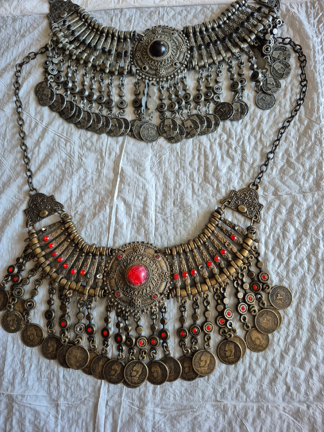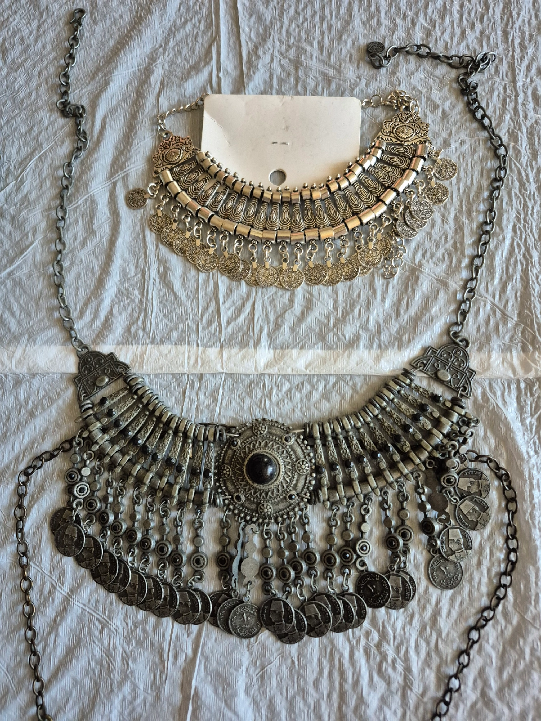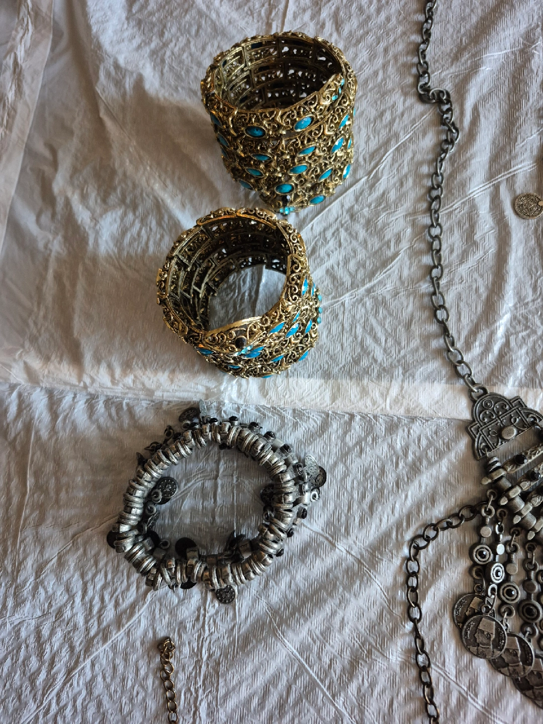 Selling a collection of bohemian-style necklaces and bracelets. These pieces feature intricate designs with metal and colourful accents. Perfect for adding a unique touch to any outfit!