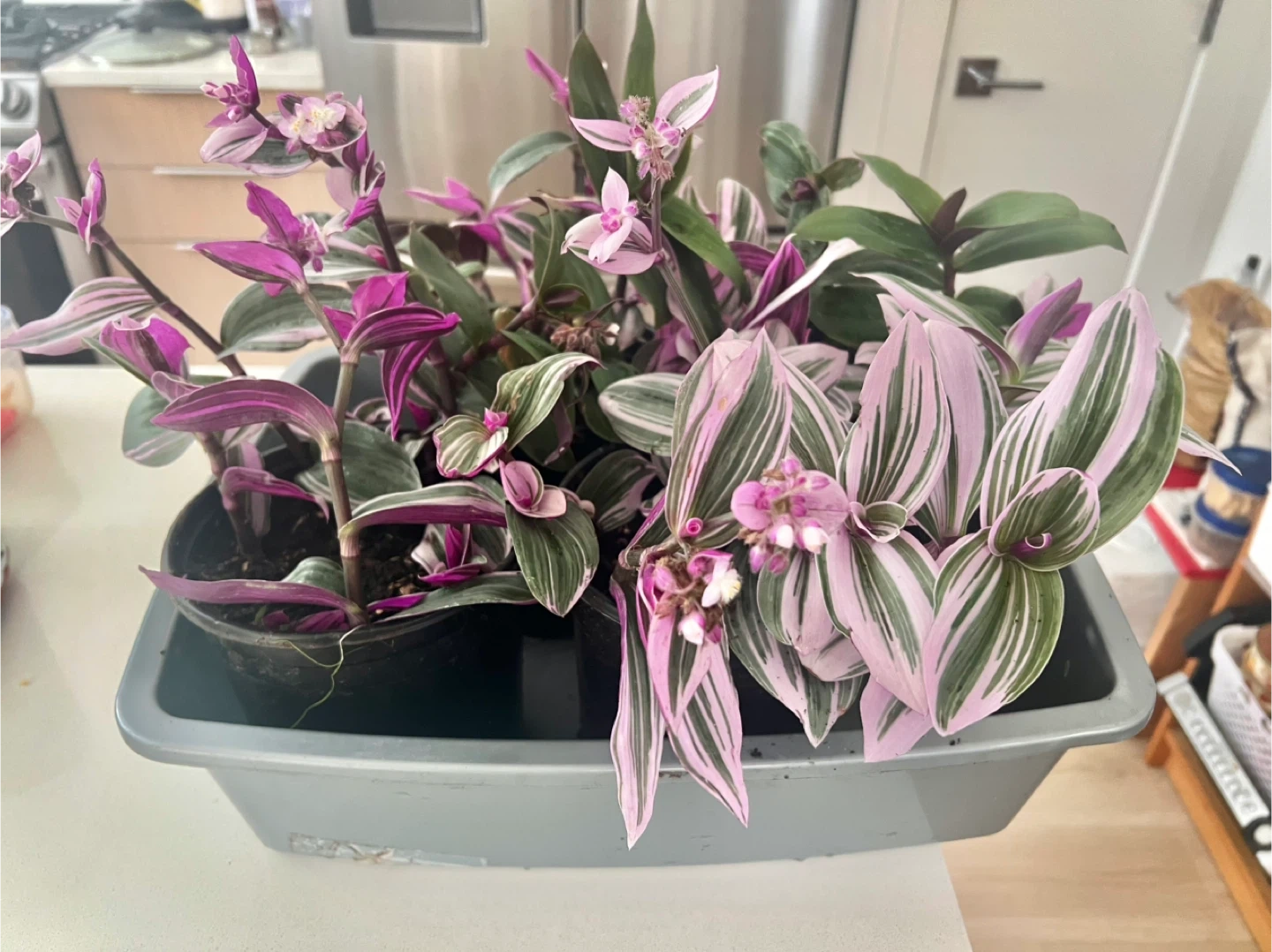 Tradescantia nanouk, or the Fantasy Venice, is a hardy, fast-growing houseplant with vibrant pink, purple, green, and white striped leaves and thick stems, known for its low-maintenance care and bright colors At least 6 well rooted plants in the 1 gallon pot I also have a pot that has 2 varieties if interested Pick up near willowbrook mall in Langley