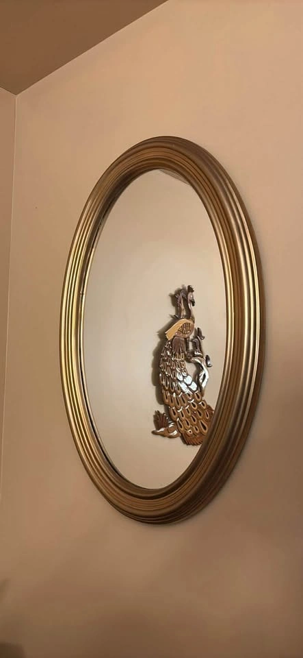 Selling a lovely oval mirror with a gold frame. It's in great condition and would add a touch of elegance to any room. Perfect for a hallway, bathroom, or bedroom. 30” inches height 21” inches-width