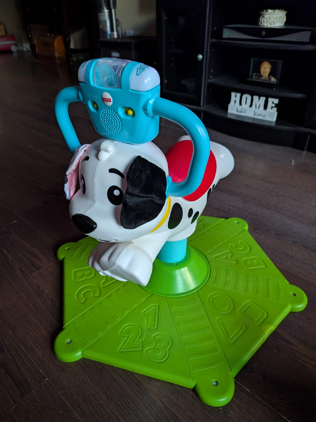 Your little one will love bouncing and spinning on this adorable Fisher-Price Bounce & Spin Puppy! The base features letters and numbers to add a bit of learning fun to playtime. It's in great condition and ready for a new home!
