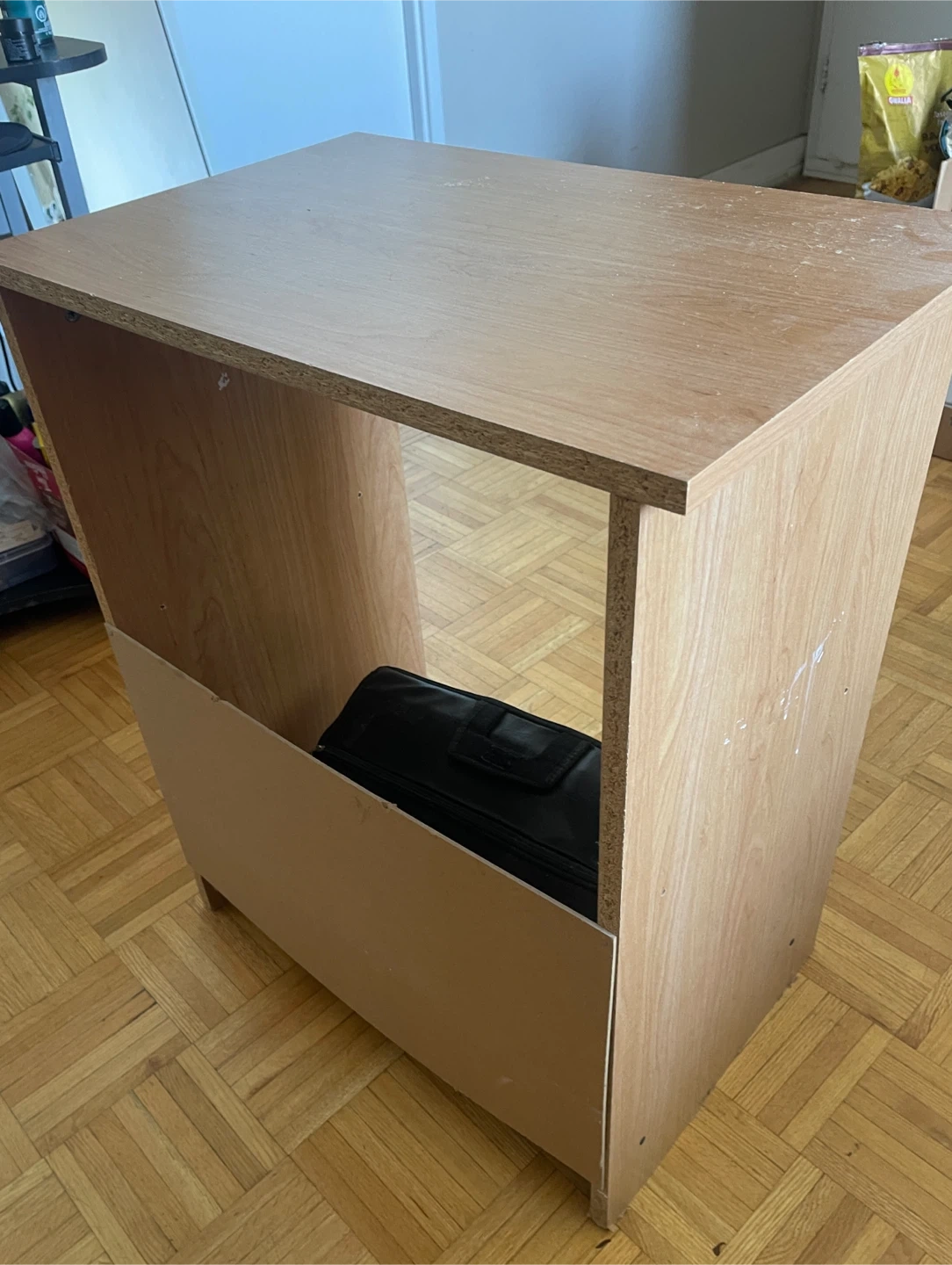 Selling a wooden side table that could also be used as a nightstand/computer table . It's in good condition and ready for a new home! Perfect for adding some extra storage space to your bedroom or living room. Move out sale Pick up only
