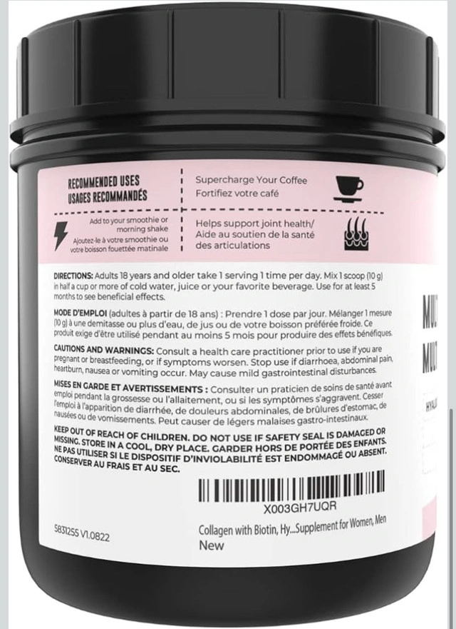 Collagen with Biotin, Hyaluronic Acid, Vitamin C, 1 lb Powder. Hydrolyzed Multi Collagen Peptide Protein. Types I, II, III, V, X, Collagen for Hair, Skin, Nails*. Collagen Supplement for Women, Men Best Bofore 11/2026