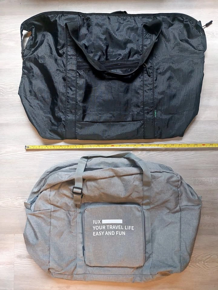 Two nice, lightweight duffel bags, both with a luggage pass-through sleeve to securely place it over a luggage’s extendable handle. Both are about 24” long. Simple, durable, and light enough to fold up and pack away when you don’t need it. Pickup at 12th Ave and Columbia St, near Broadway City Hall Skytrain.