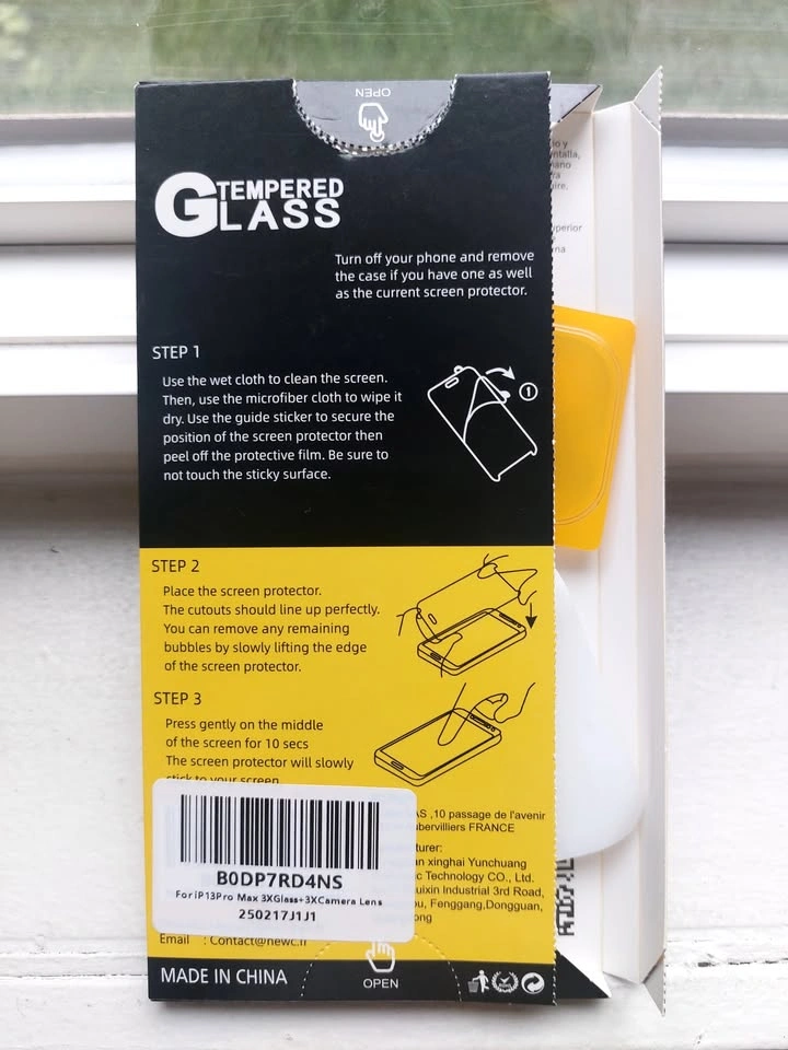 The package came with 3 sets, and I only used one. Remaining are 2 complete sets of glass screen protector, and camera lens protector. Compatible with the iPhone 13 Pro Max (6.7 inches). Pickup at 12th Ave and Columbia St, near Broadway City Hall Skytrain.