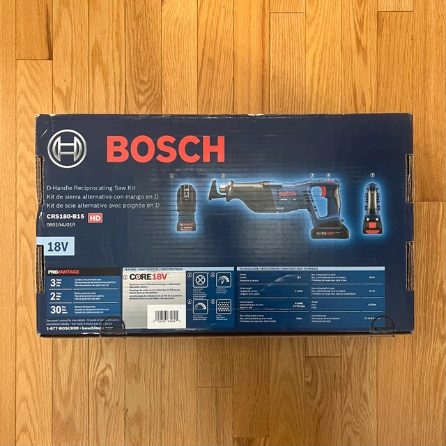 BRAND NEW - Bosch 18v reciprocating saw. TOOL ONLY Includes: - reciprocating saw - 1 carbide blade - owners manual - original box Model # CRS-180 Condition: New For Sale By: Owner