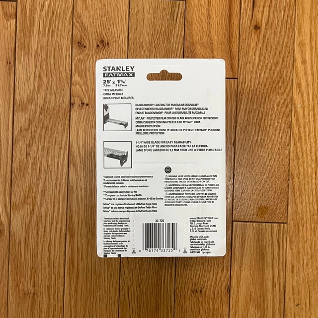 BRAND NEW - Stanley Fatmax 25’ tape measure. Lifetime limited warranty (free replacements) MADE IN USA Model # 33-725