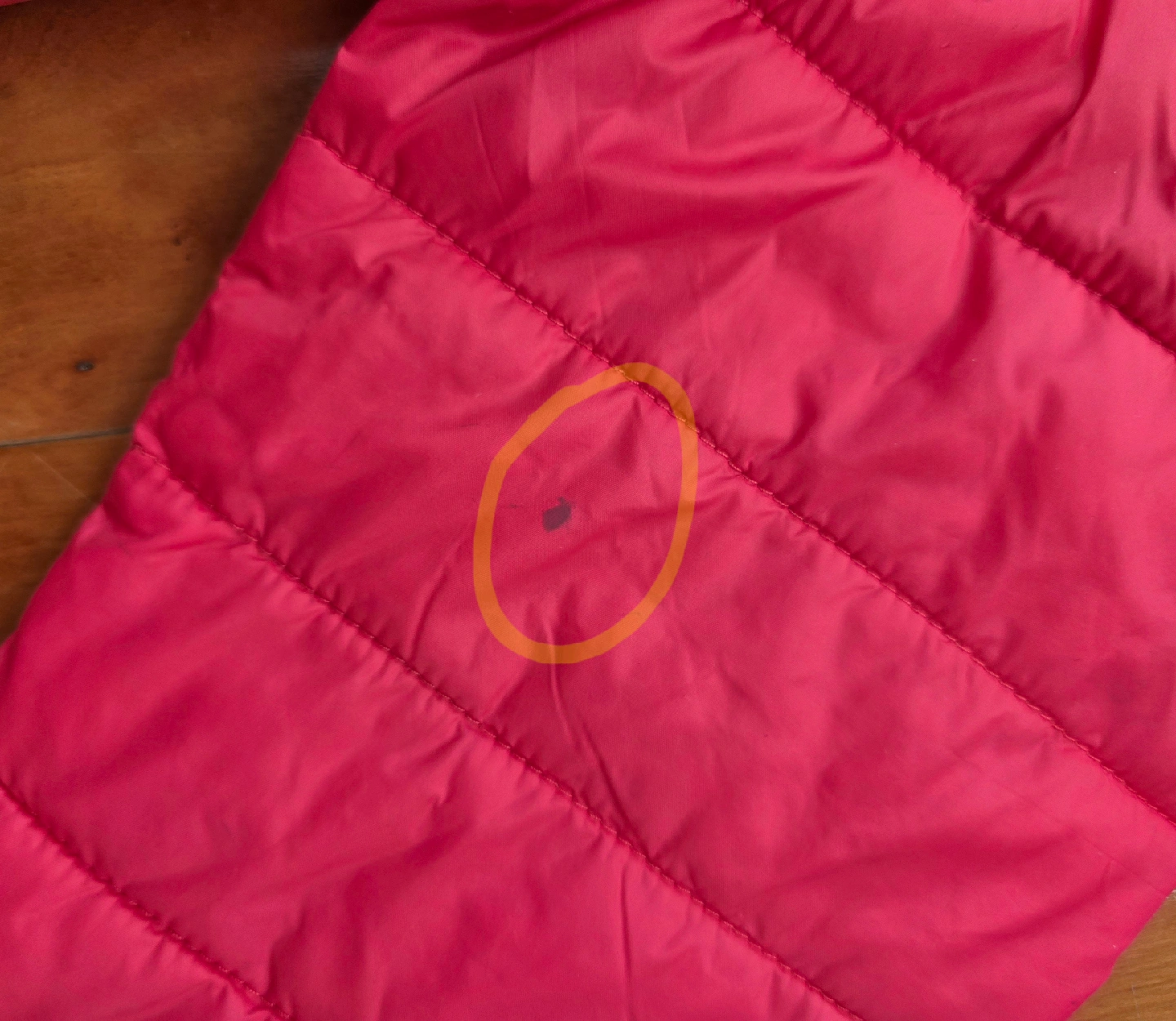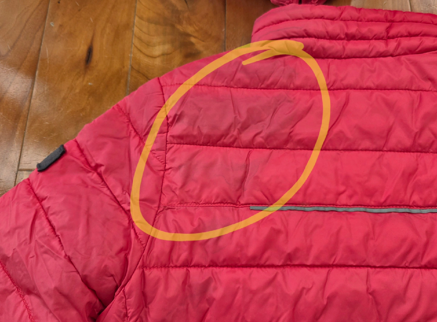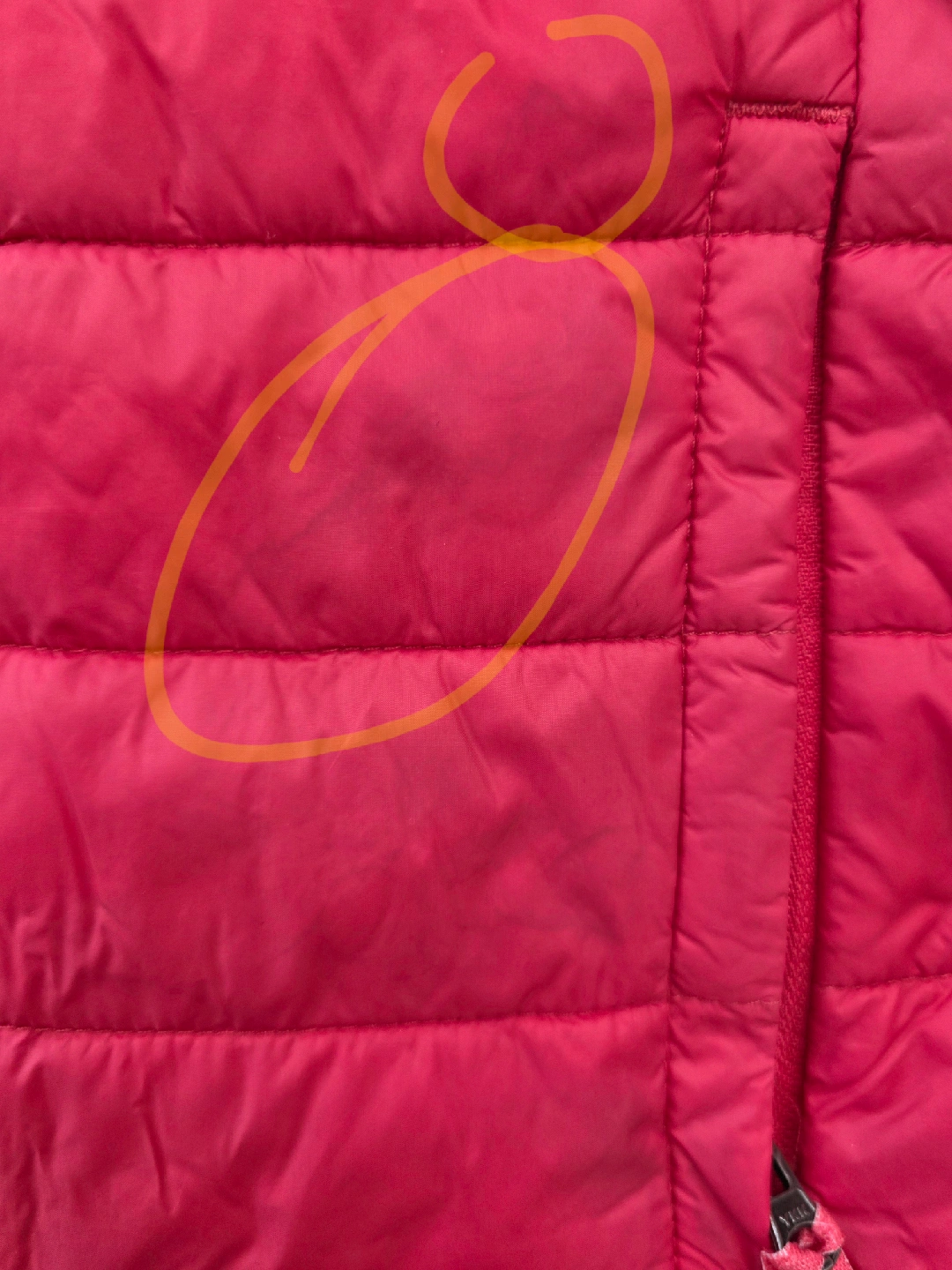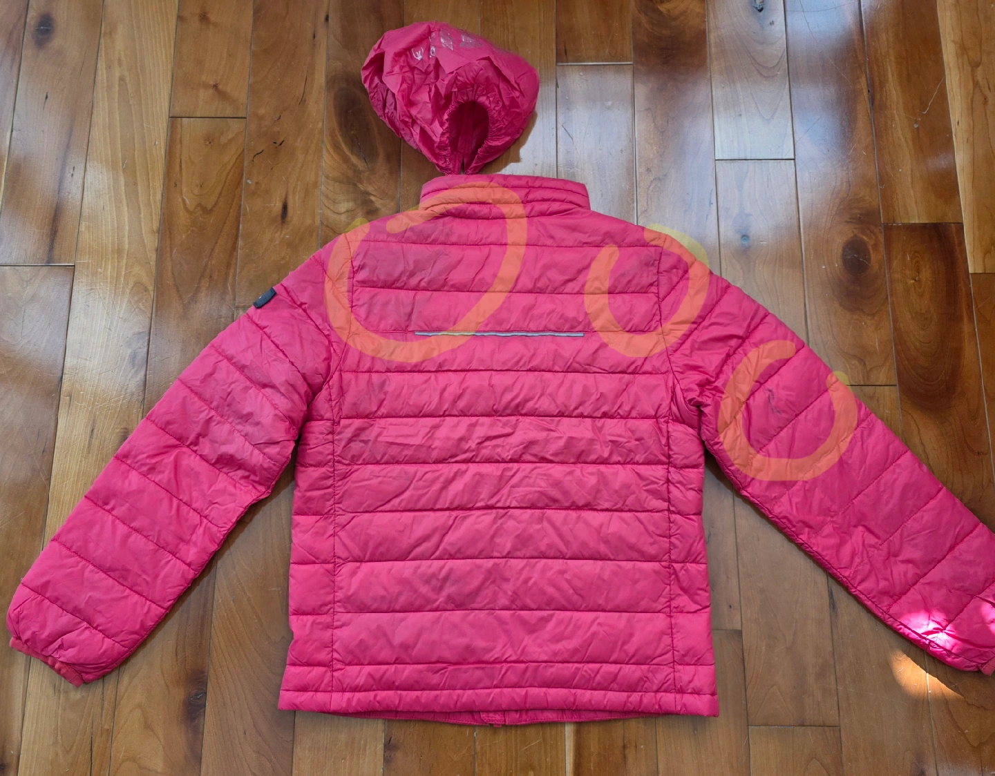 Lolë girl's jacket. It's a size M (7/8y). It also comes with a stuff sack for easy storage and portability The fabric is painted over in some places