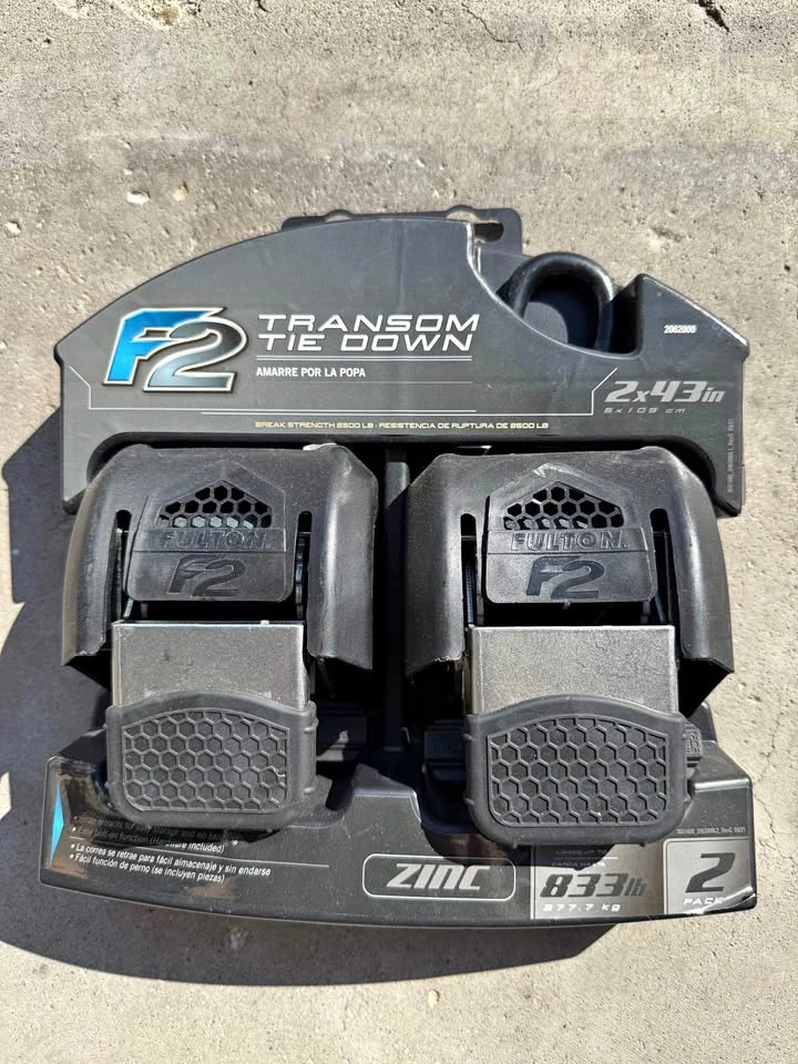 Fulton F2 zinc transom tie down straps #[hidden information]lb - 2500lb break point. Recommended for up to 36ft boat. NIB