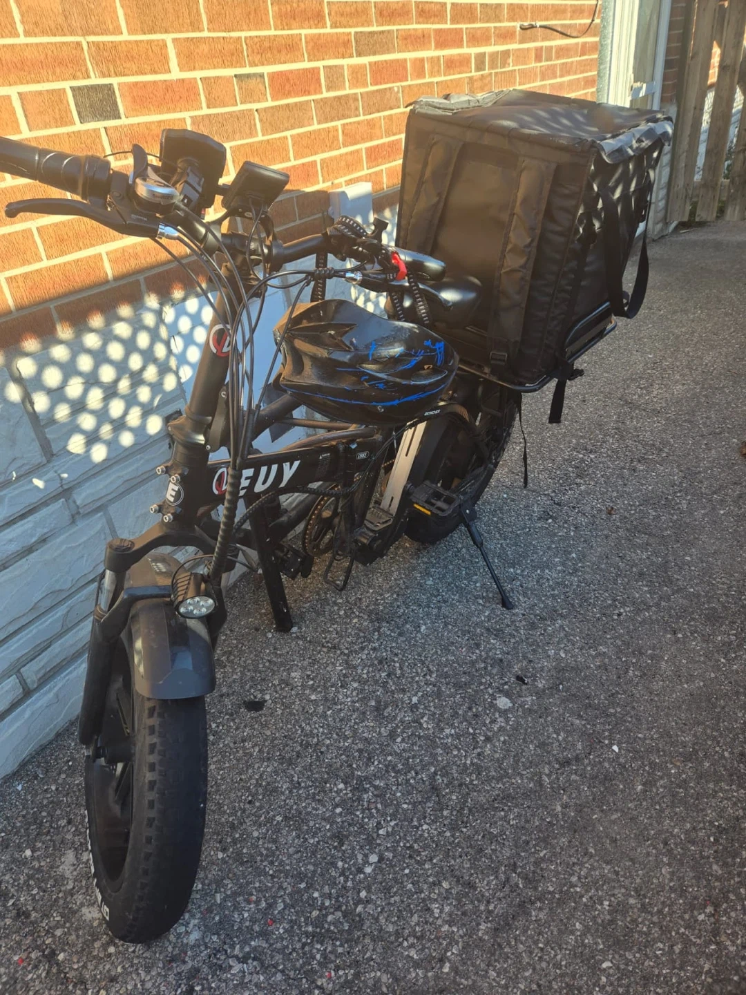 Selling an Euy electric folding bike. It looks like it's in good condition and ready for a new owner! Perfect for getting around town or for food delivery services