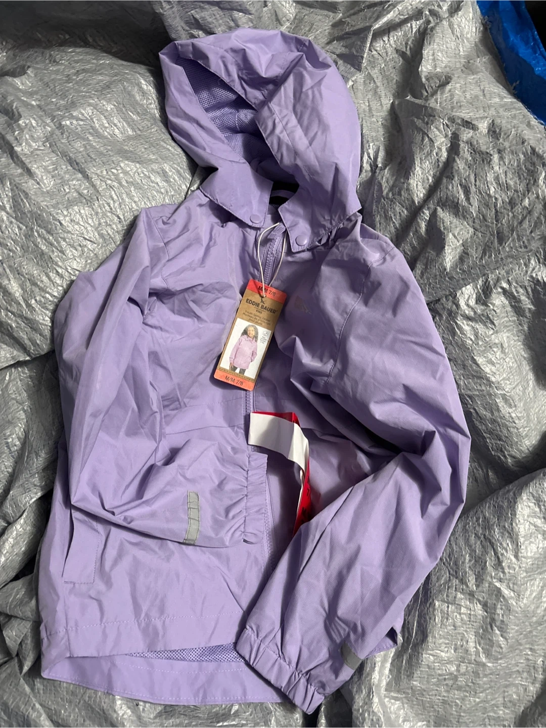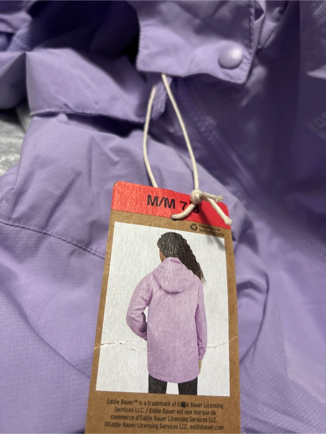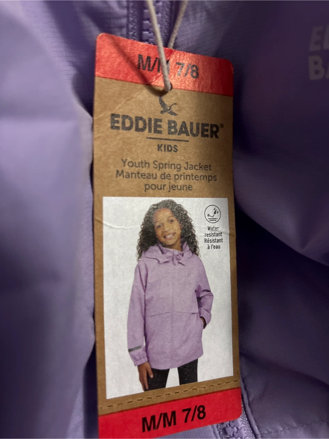 This is a brand new Eddie Bauer Youth Spring Jacket, perfect for those cooler spring days! It's a lovely light purple colour and is size M (7/8). It's water resistant too, so great for light rain. Comes with original tags!