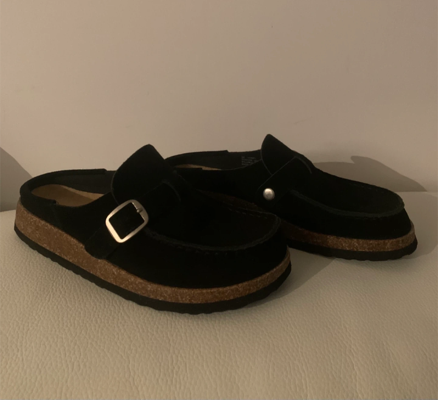 ✔️Cash & Pickup Only Please 📍Near Lake Shore Blvd W and Park Lawn. See Map on listing. 💛 Feel free to check out my other listings! • 🔥deal! Brand new! Never worn. • Genuine leather suede. • Black. • Size 9 • Super comfortable! • Inside elastic and buckle let you adjust for the best fit for you. • Original box included. • First 5 pics are from the website due to my pics being too dark. I’ll try to take some during the day. They are absolutely NEW 😀 🌟Purchased on Amazon last Spring for $90.38 tax-in. Now Sold-Out! I had forgotten about these and I just purchased the Birks “Buckley” for $240 and already worn 😱 So my lost is your gain! Btw, not worth buying Birks
