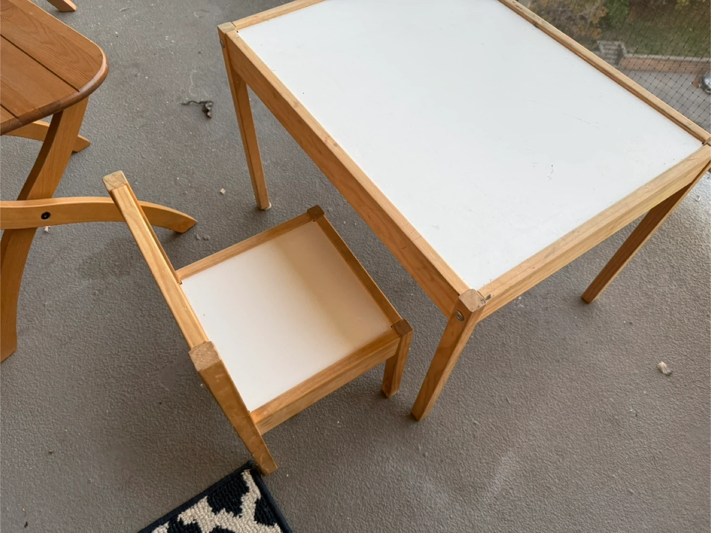 A cute little table and chair set for kids! Perfect for arts and crafts, snack time, or just a comfy place to sit and play. The set is in good condition and ready for a new home Dufferin & Eglinton